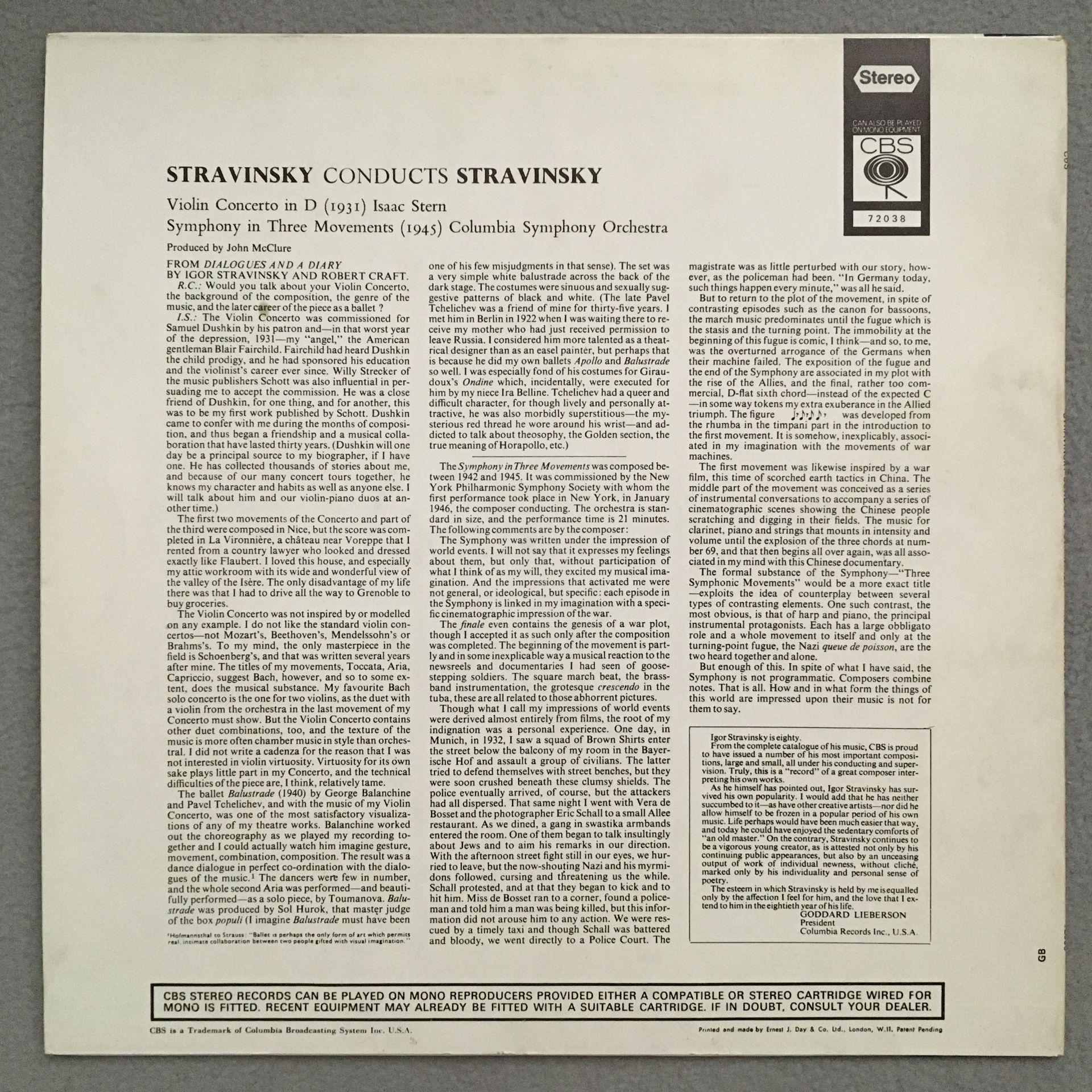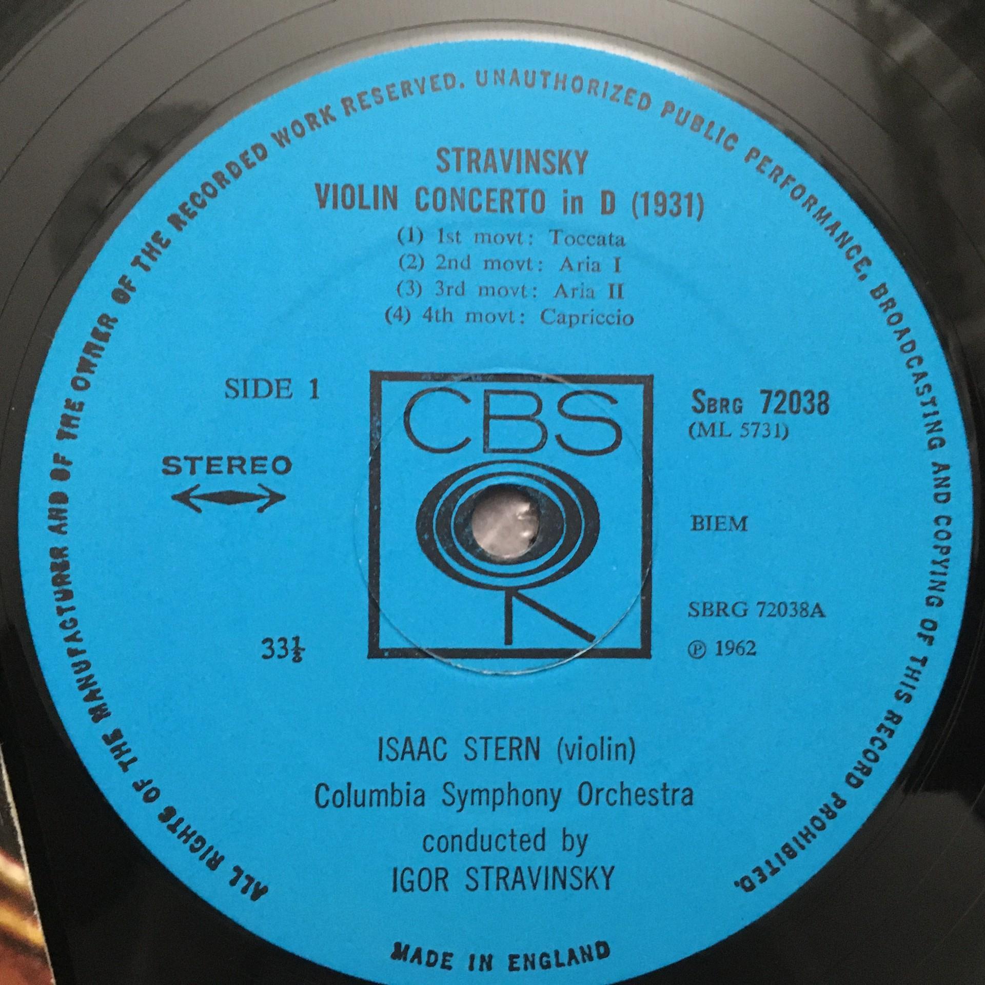 P586 Stravinsky Violin Concerto Symphony Stern CBS 72038 Stereo