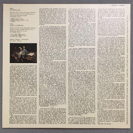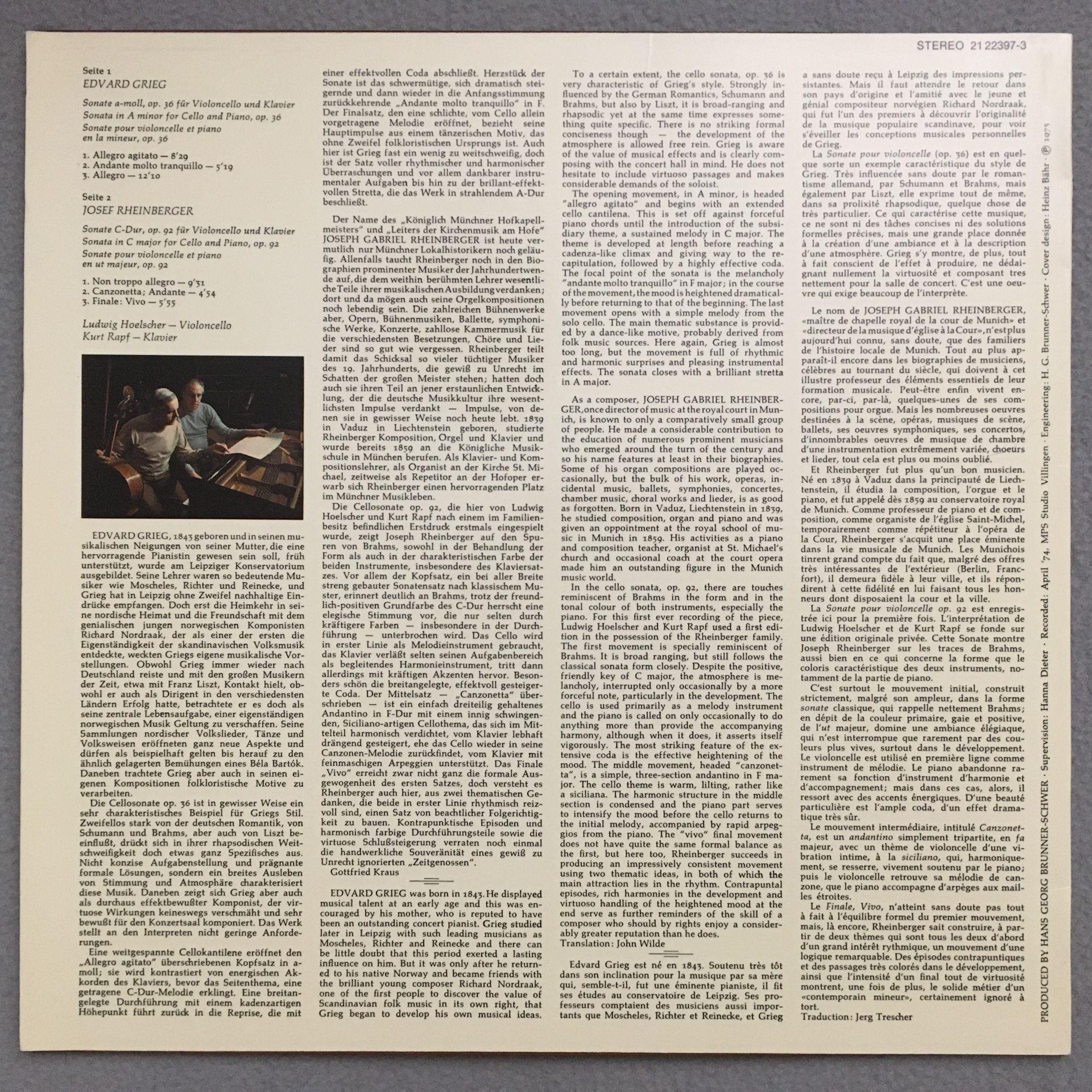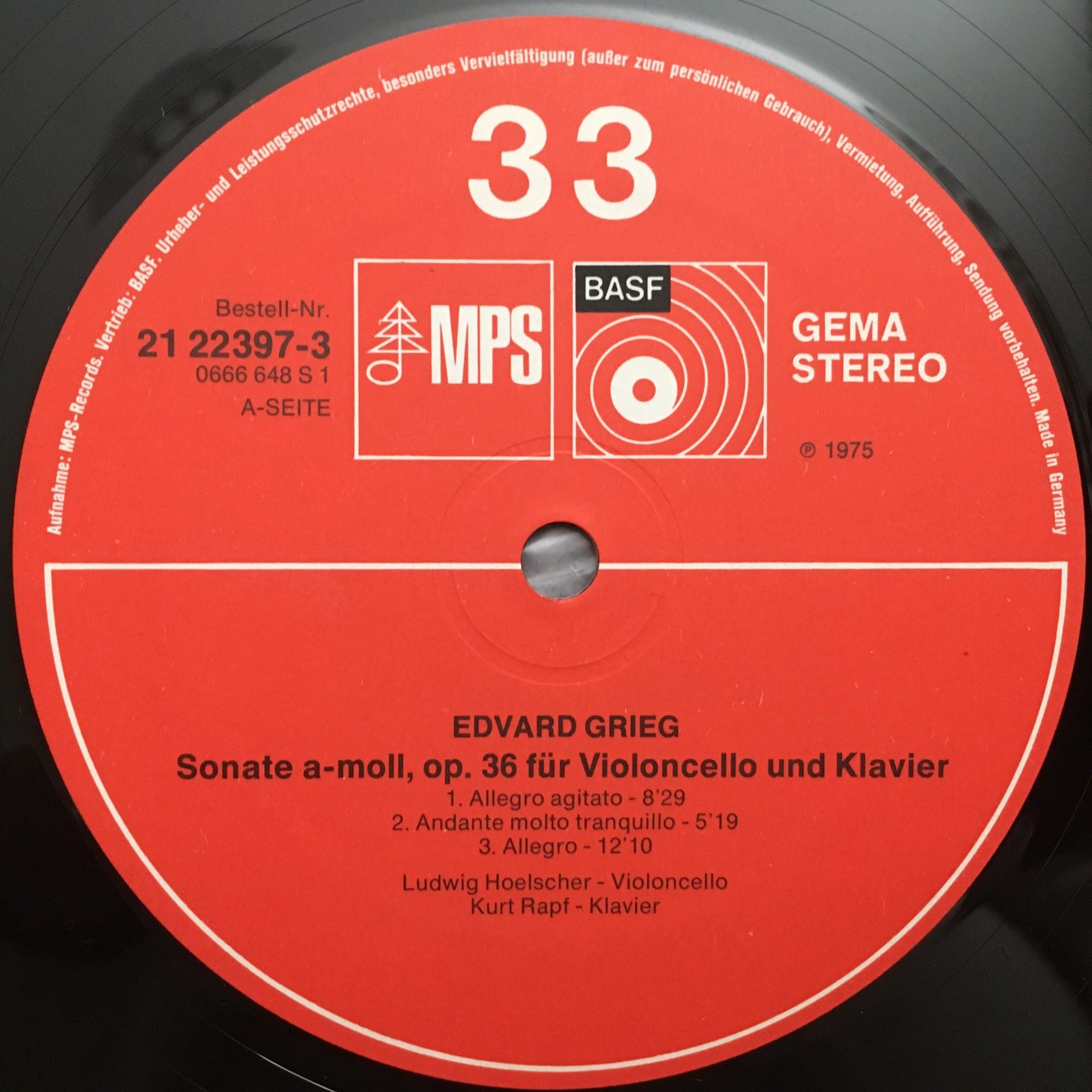 P588 Grieg Rheinberger Cello & Piano Sonatas Hoelscher Rapf BASF 21 22397-3 Ster