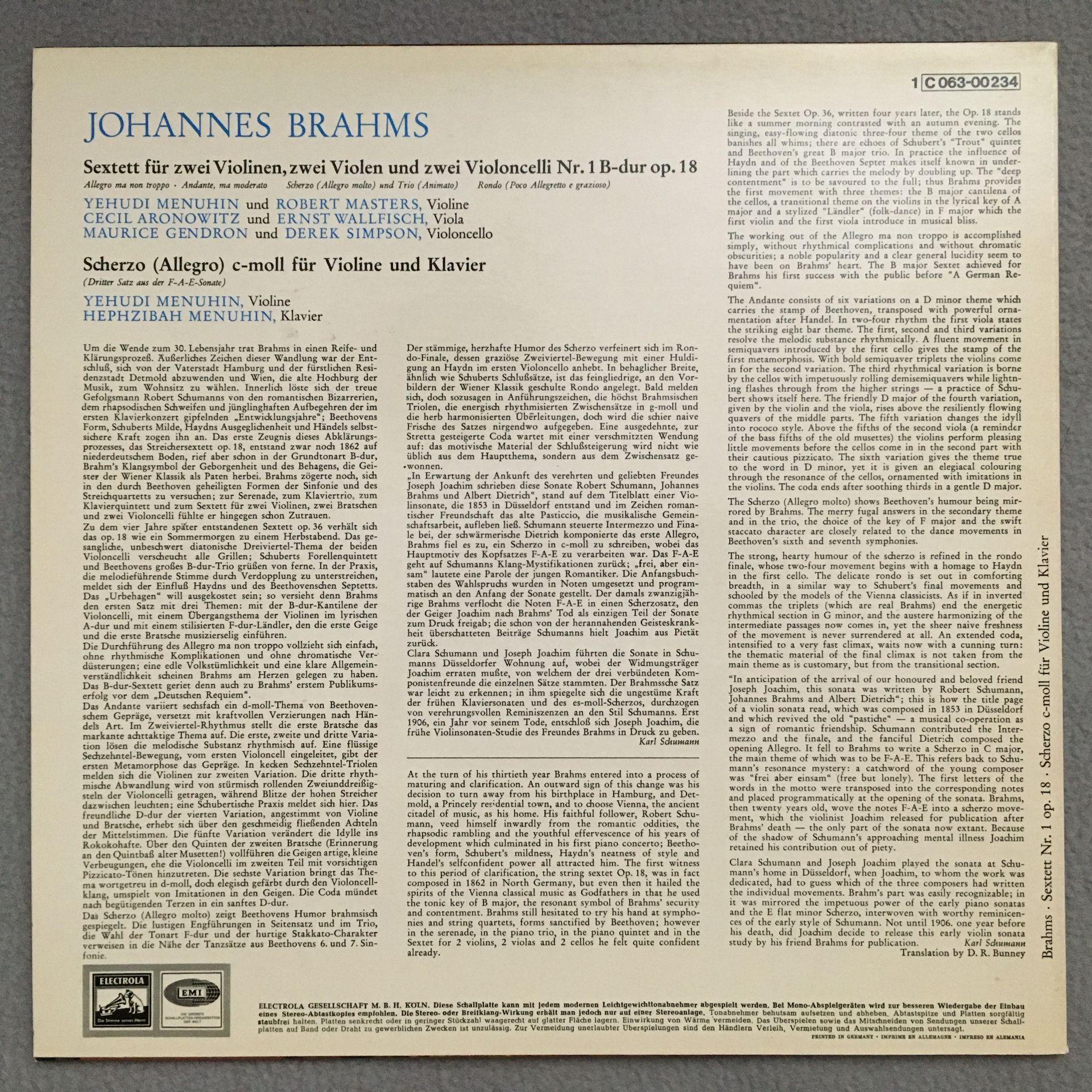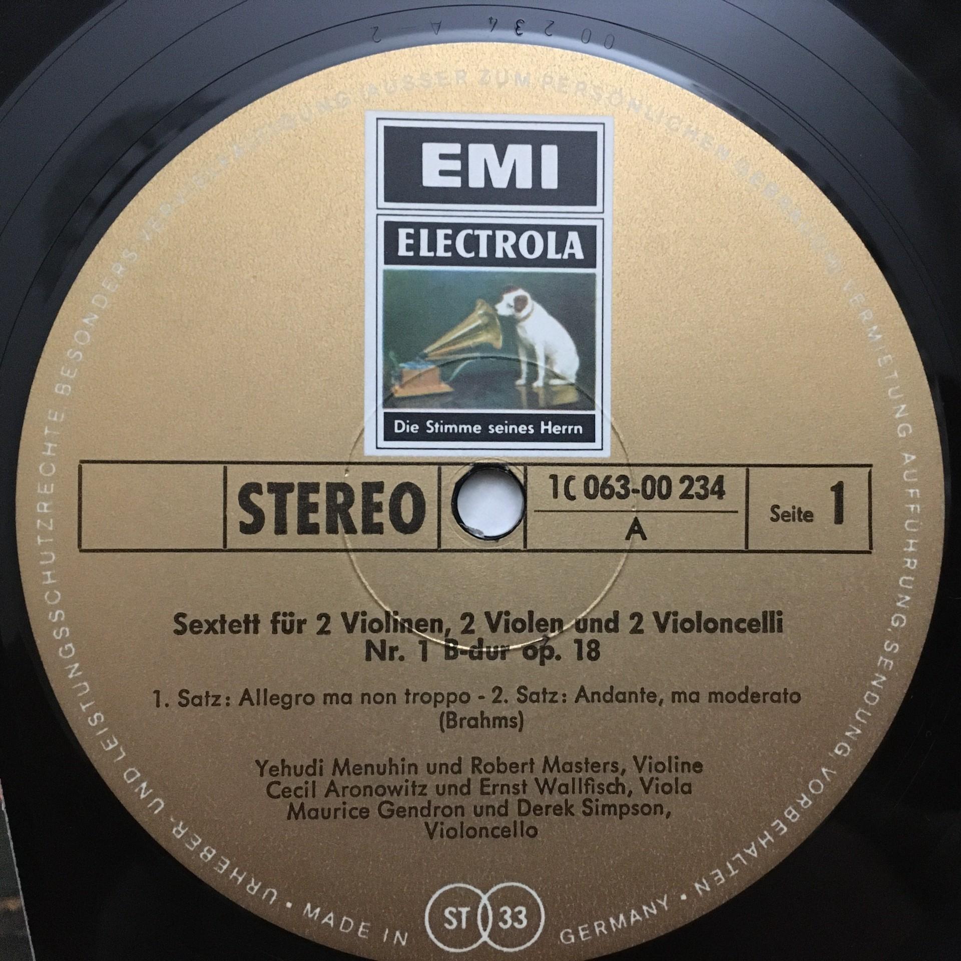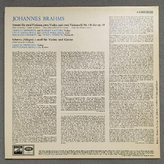 P597 Brahms Sextet Menuhin Aronowitz Gendron EMI 1 C 063-00 234 Stereo