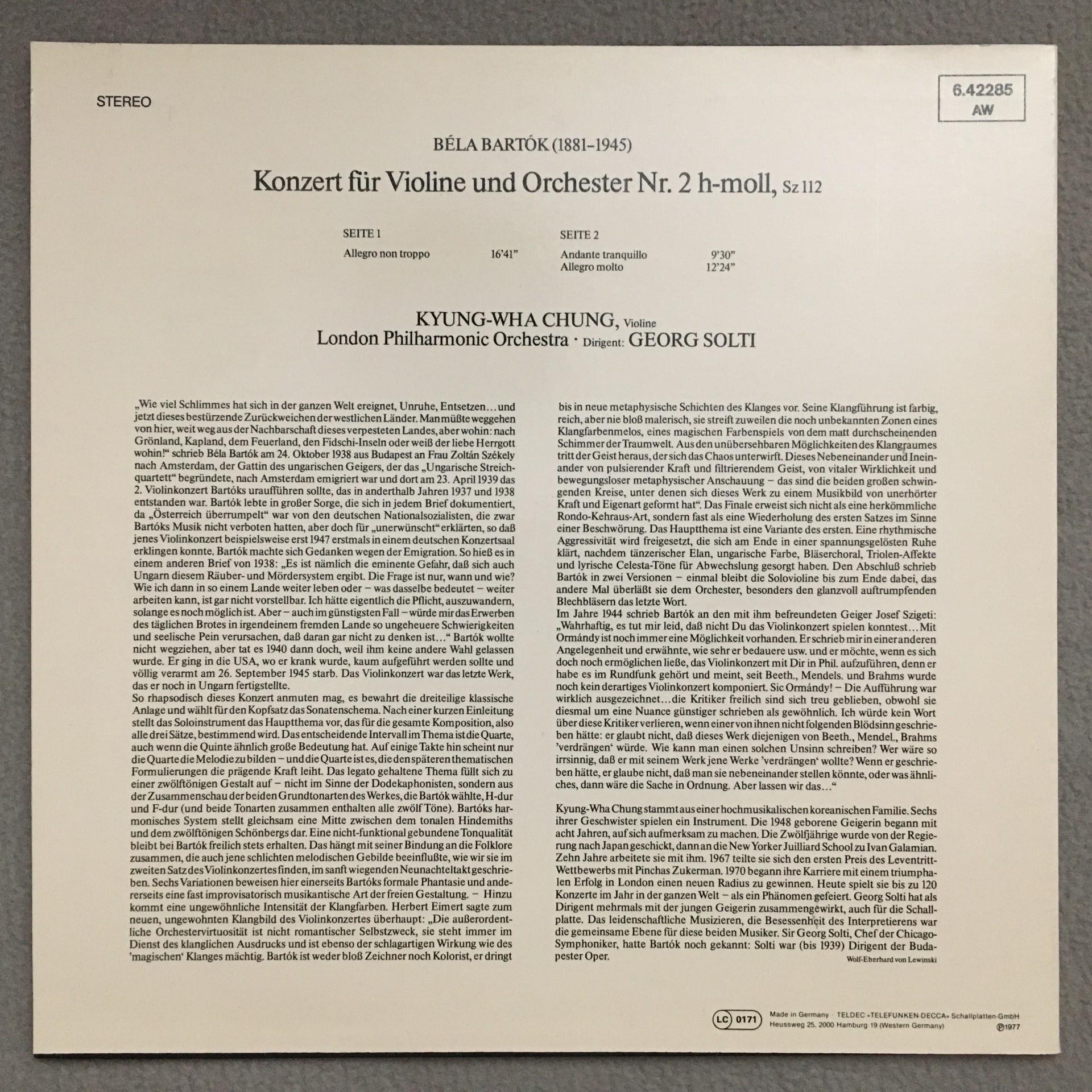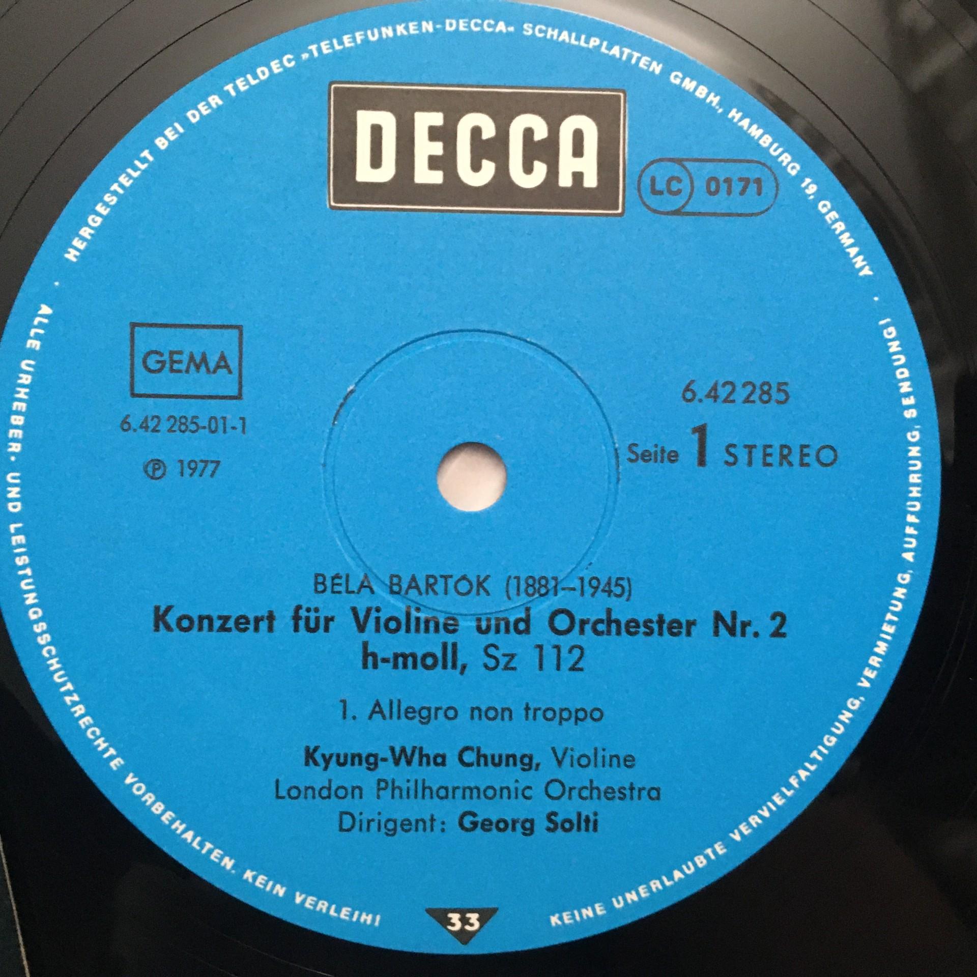 P599 Bartok Violin Concerto Chung Solti DECCA 6.42285 AW Stereo