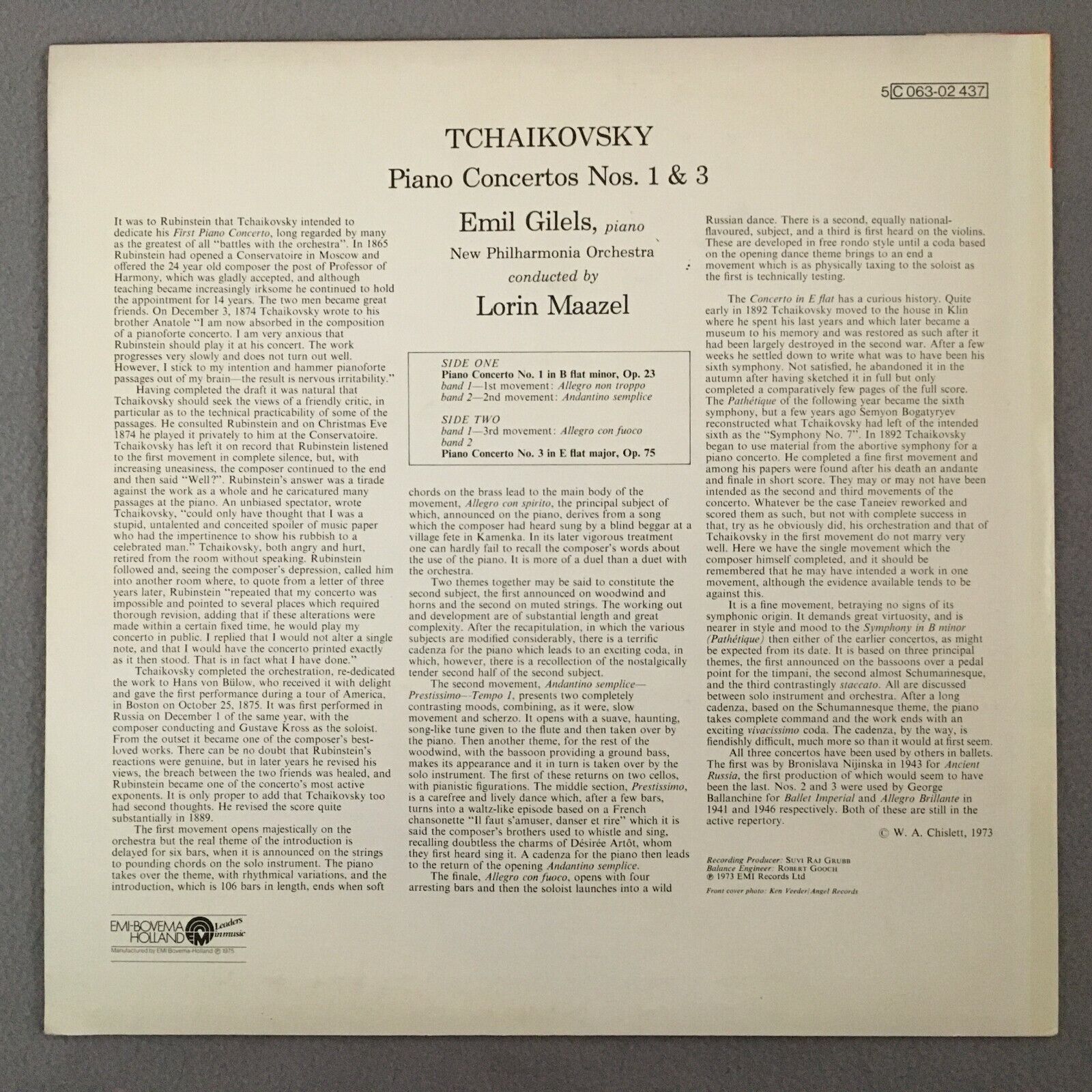 R143 Tchaikovsky Piano Concertos Gilels Maazel EMI 5 C 063-02 437 Stereo