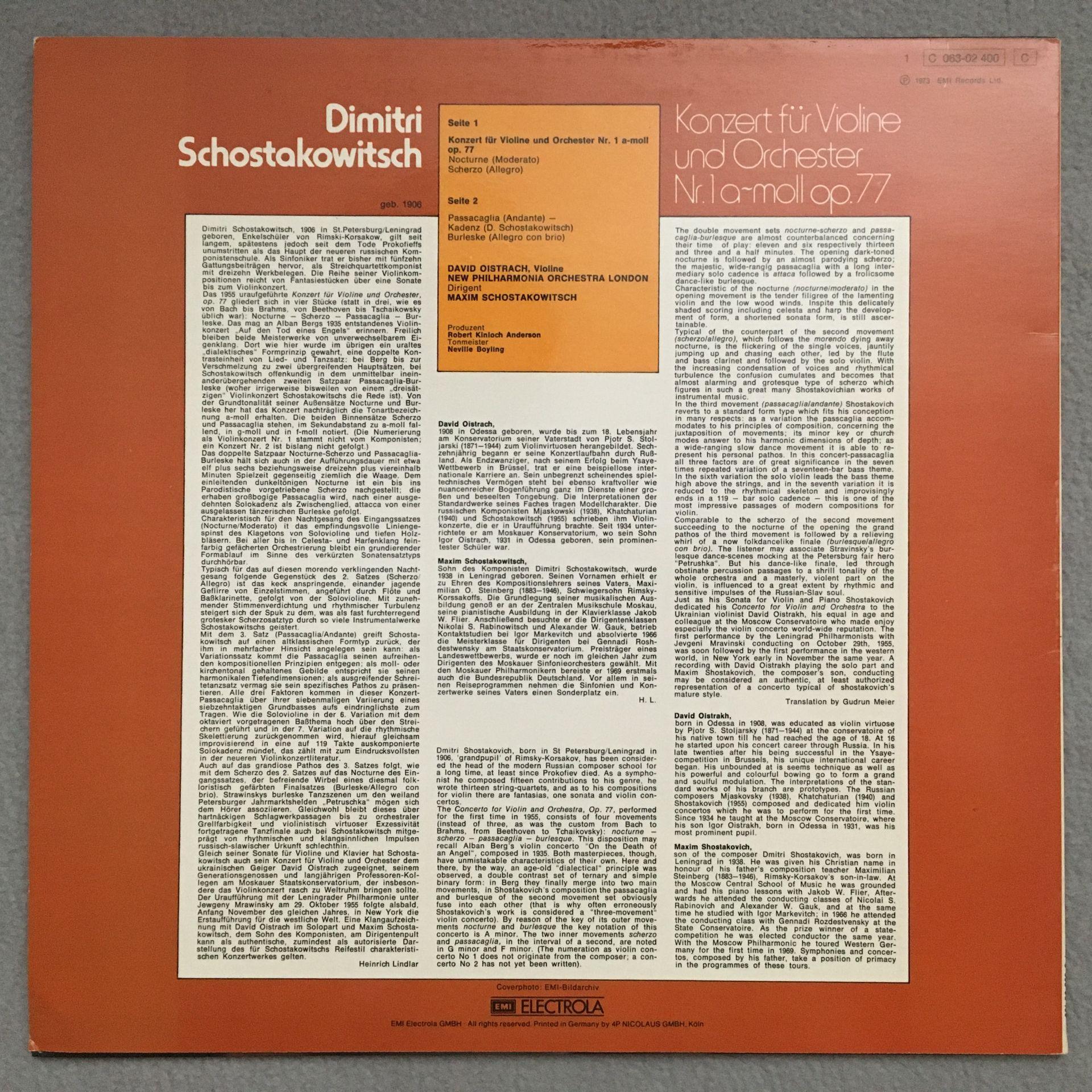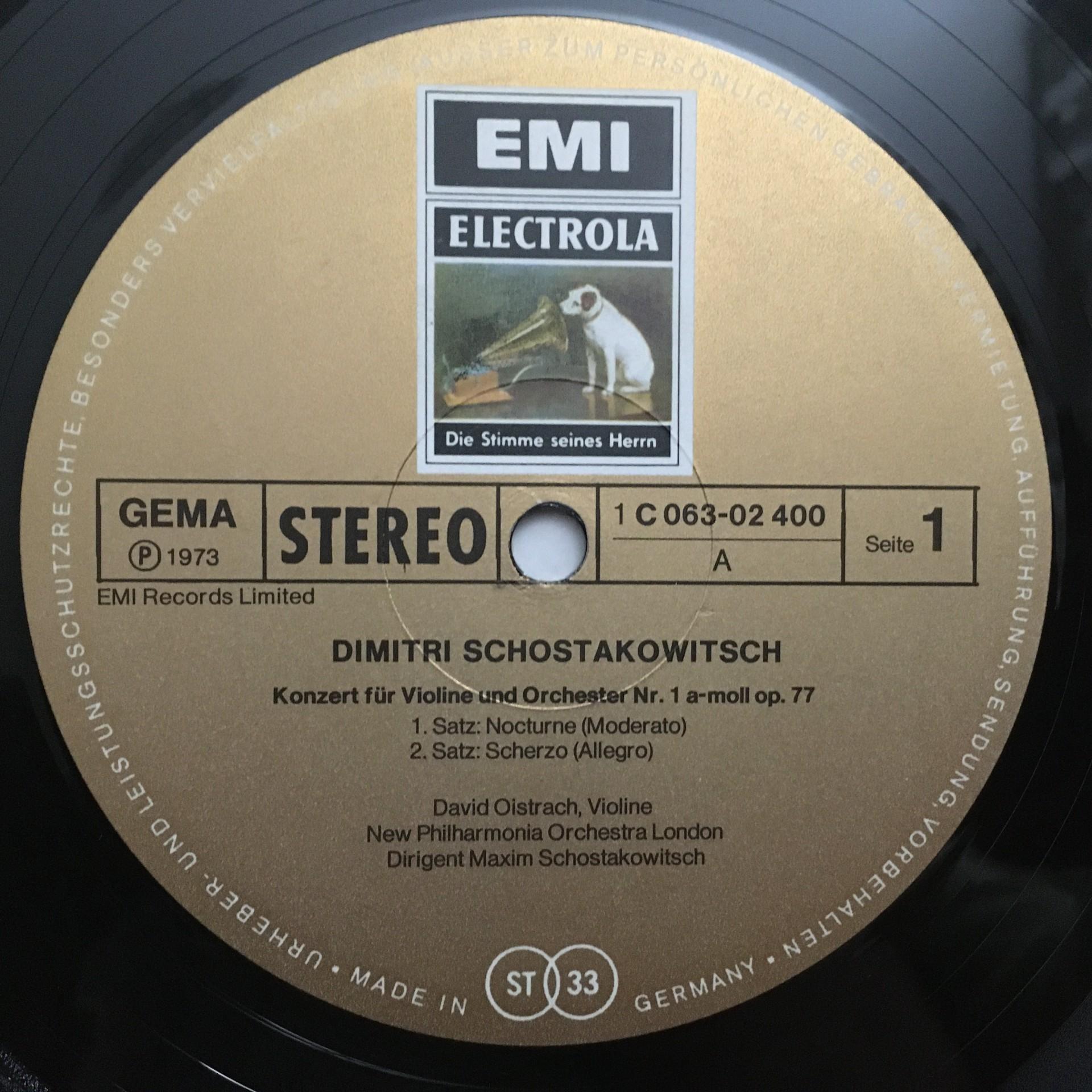 P600 Shostakovich Violin Concerto Oistrakh EMI 1 C 063-02 400 Stereo
