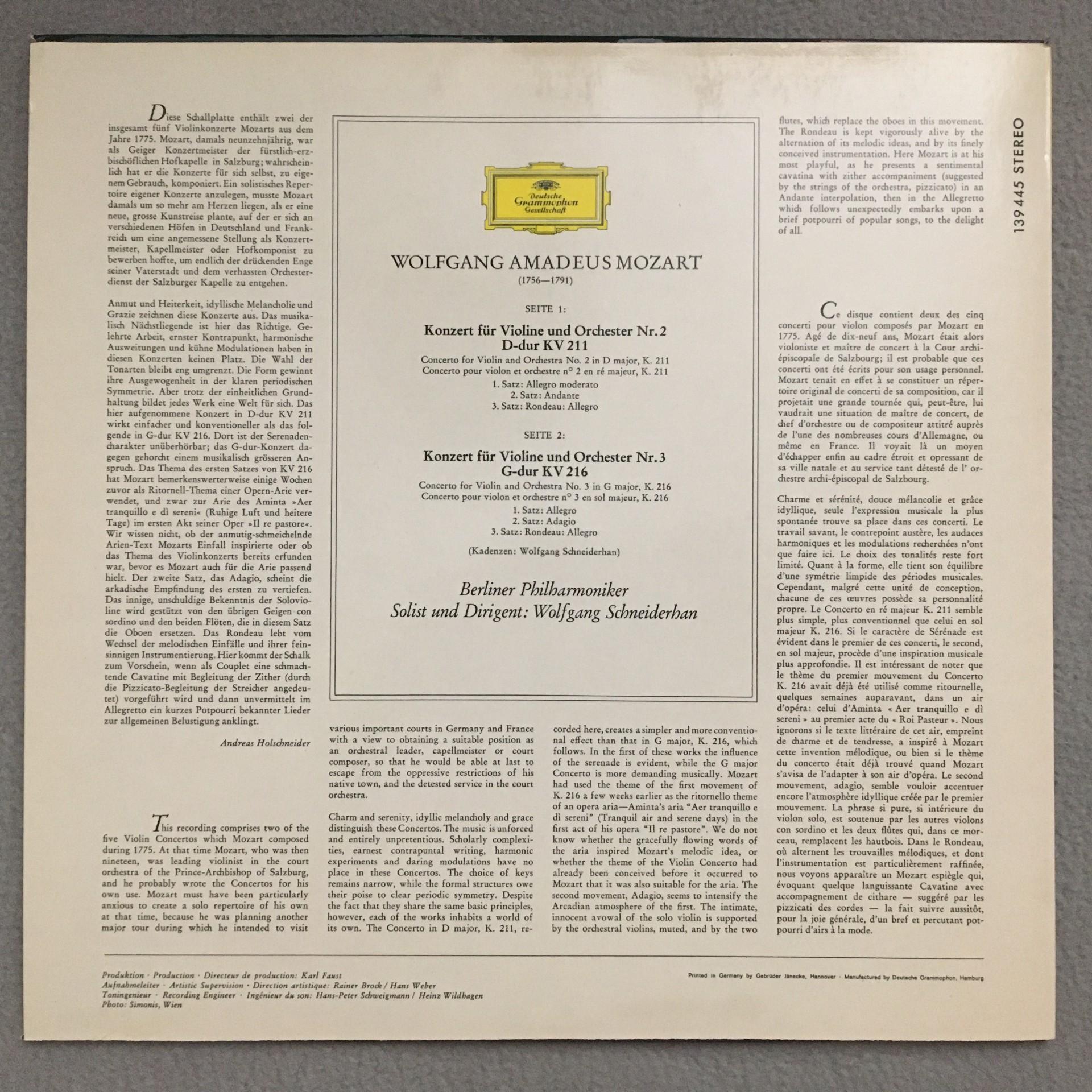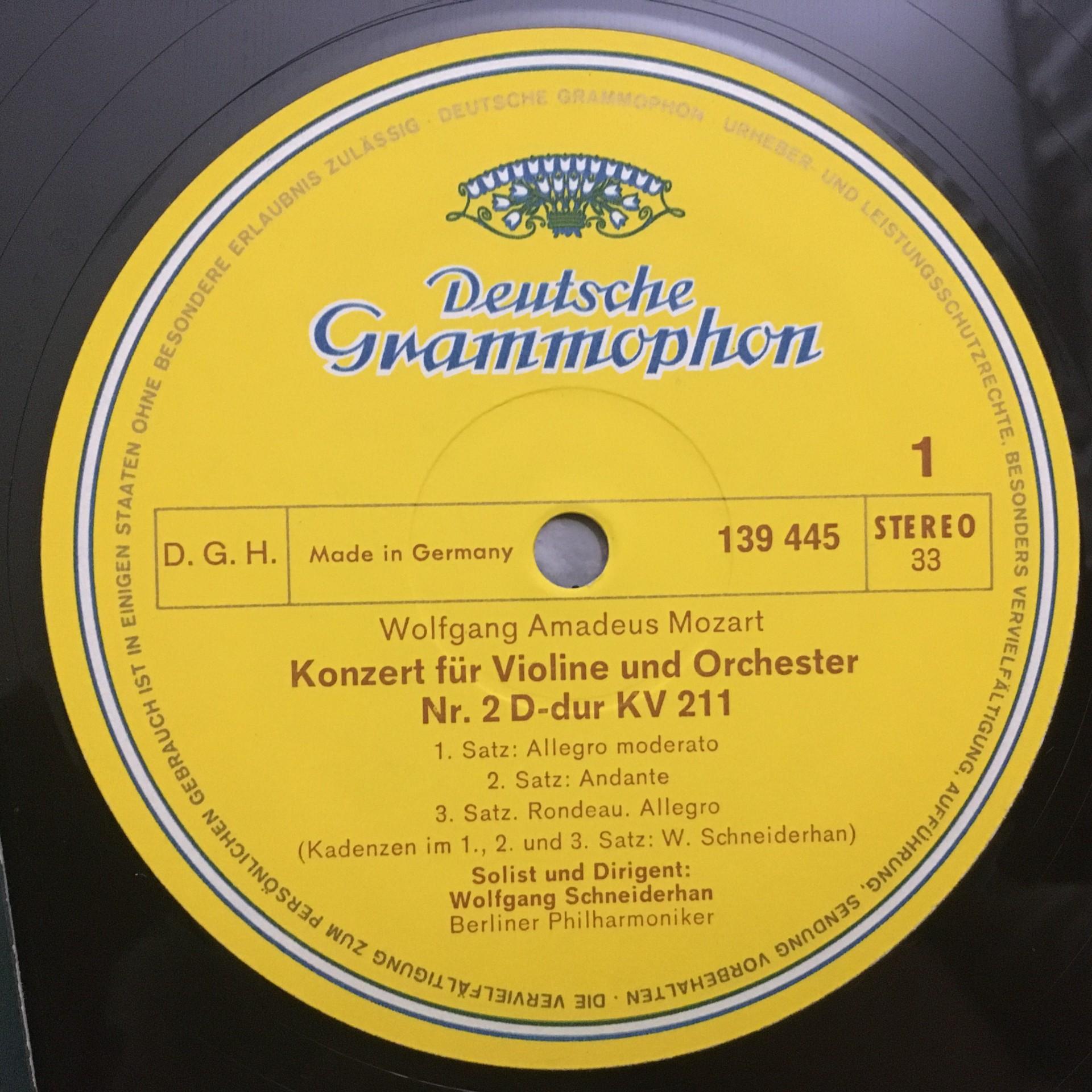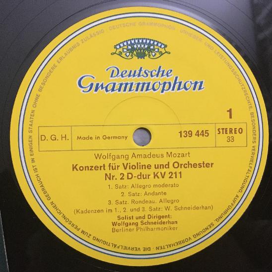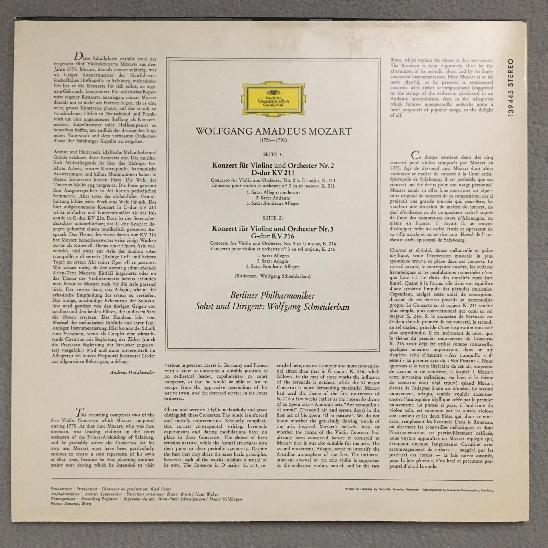 P601 Mozart Violin Concertos No.2 & 3 Schneiderhan BPO DGG 139 445 SLPM Stereo