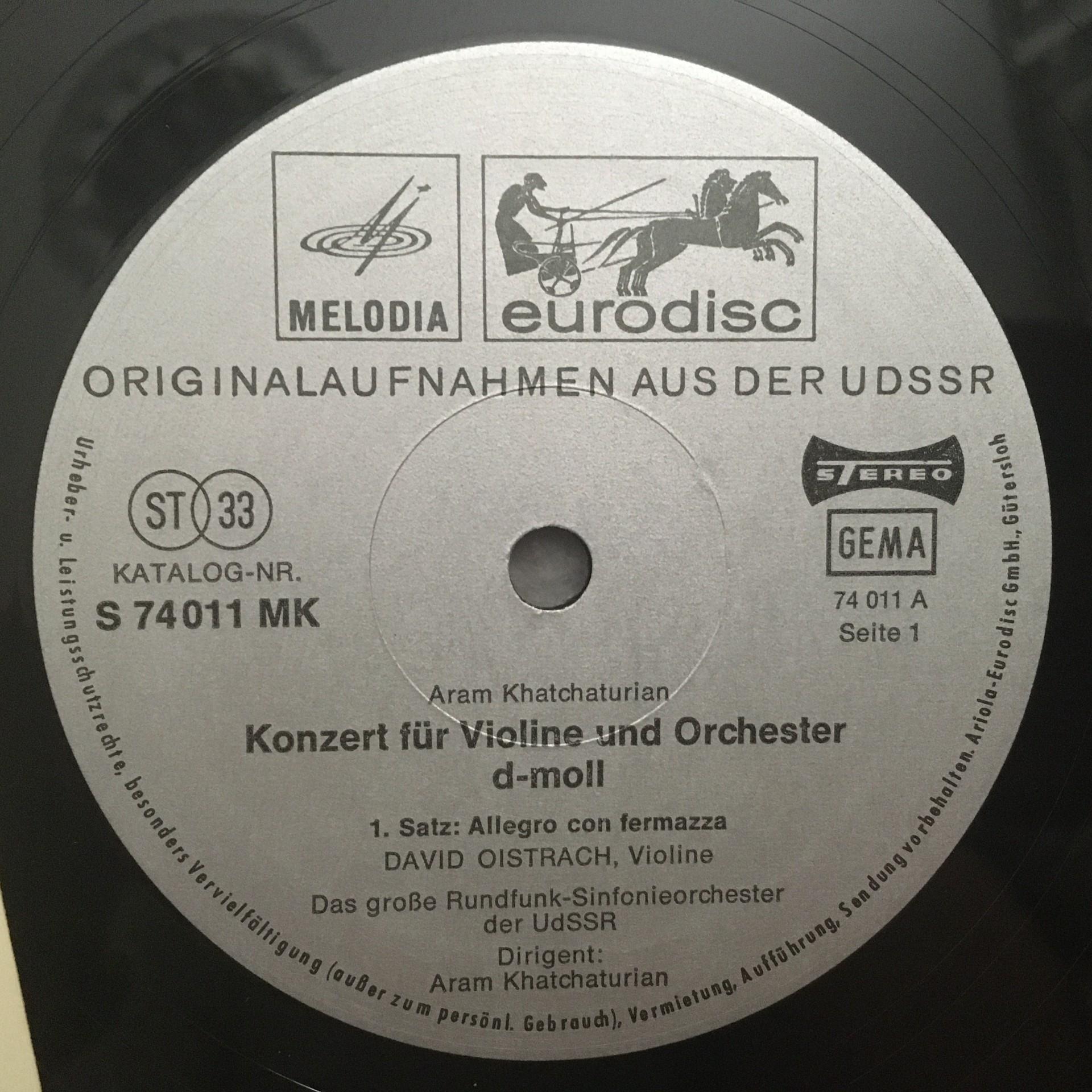 P608 Khatchaturian Violin Concerto Oistrakh Eurodisc 74 011 MK Stereo