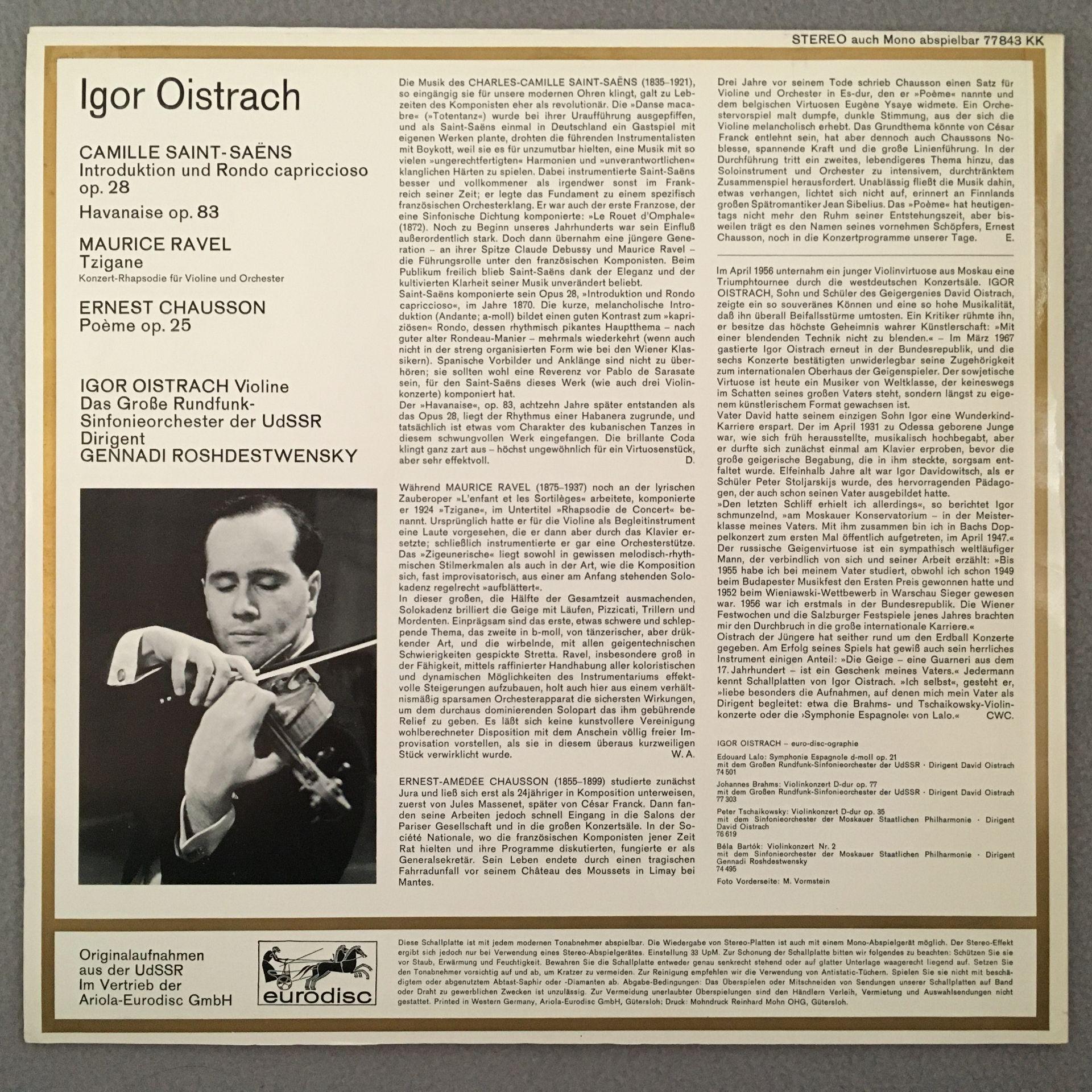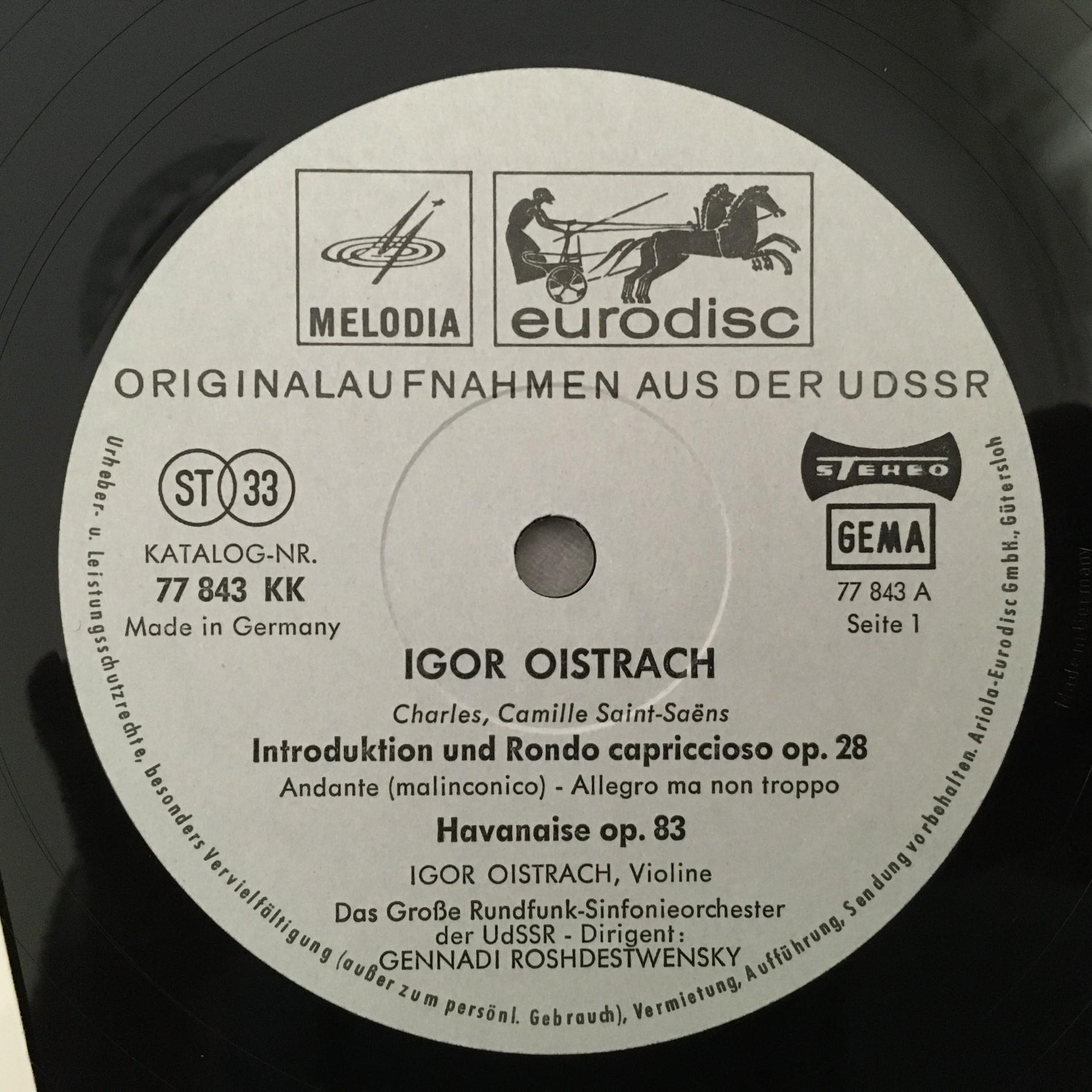 P612 Saint-Saens Introduction Ravel Oistrakh Rozhdestvensky Eurodisc 77 843 St