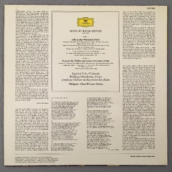 P615 Henze Violin Concerto Ode Palm Schneiderhan Henze DGG 139 382 Stereo
