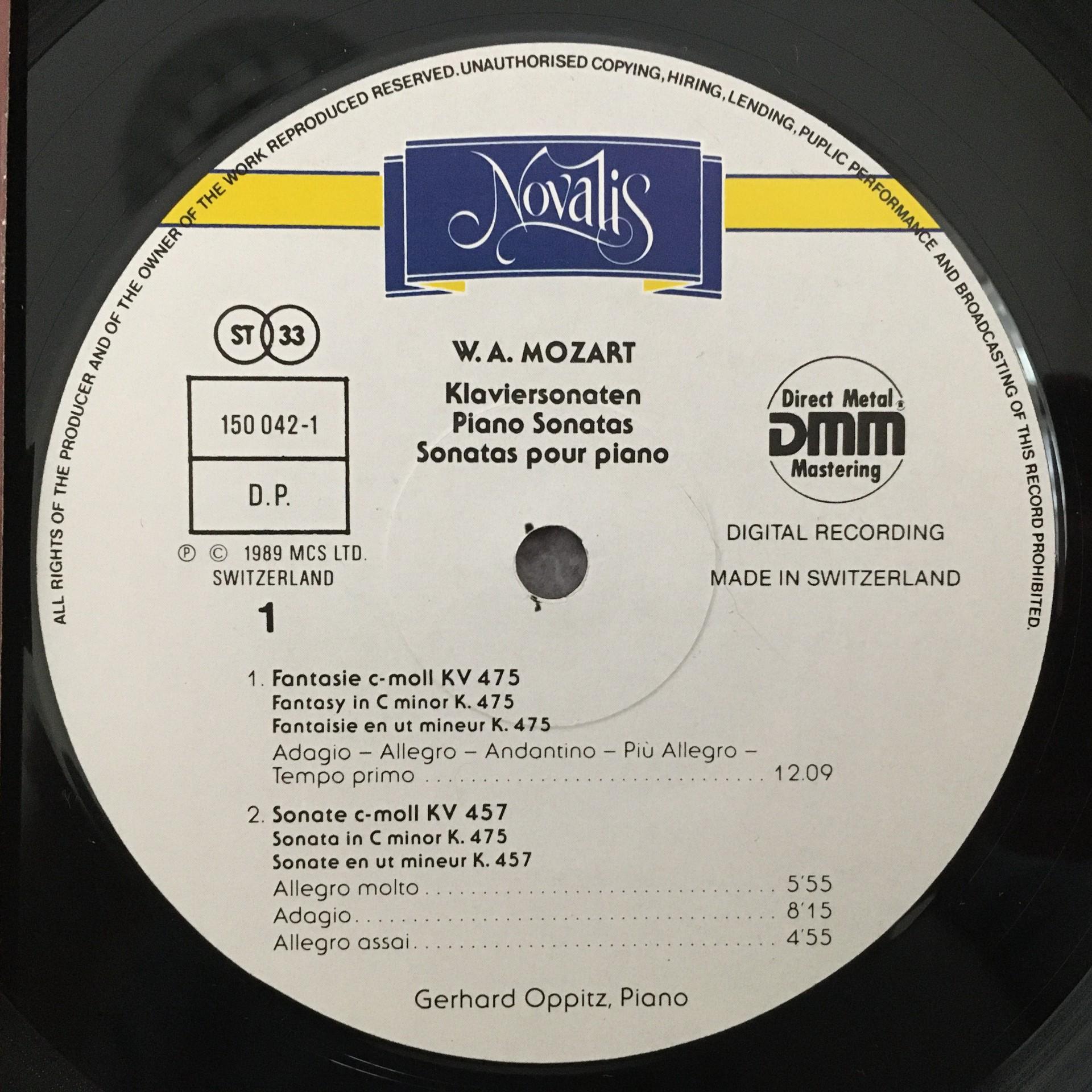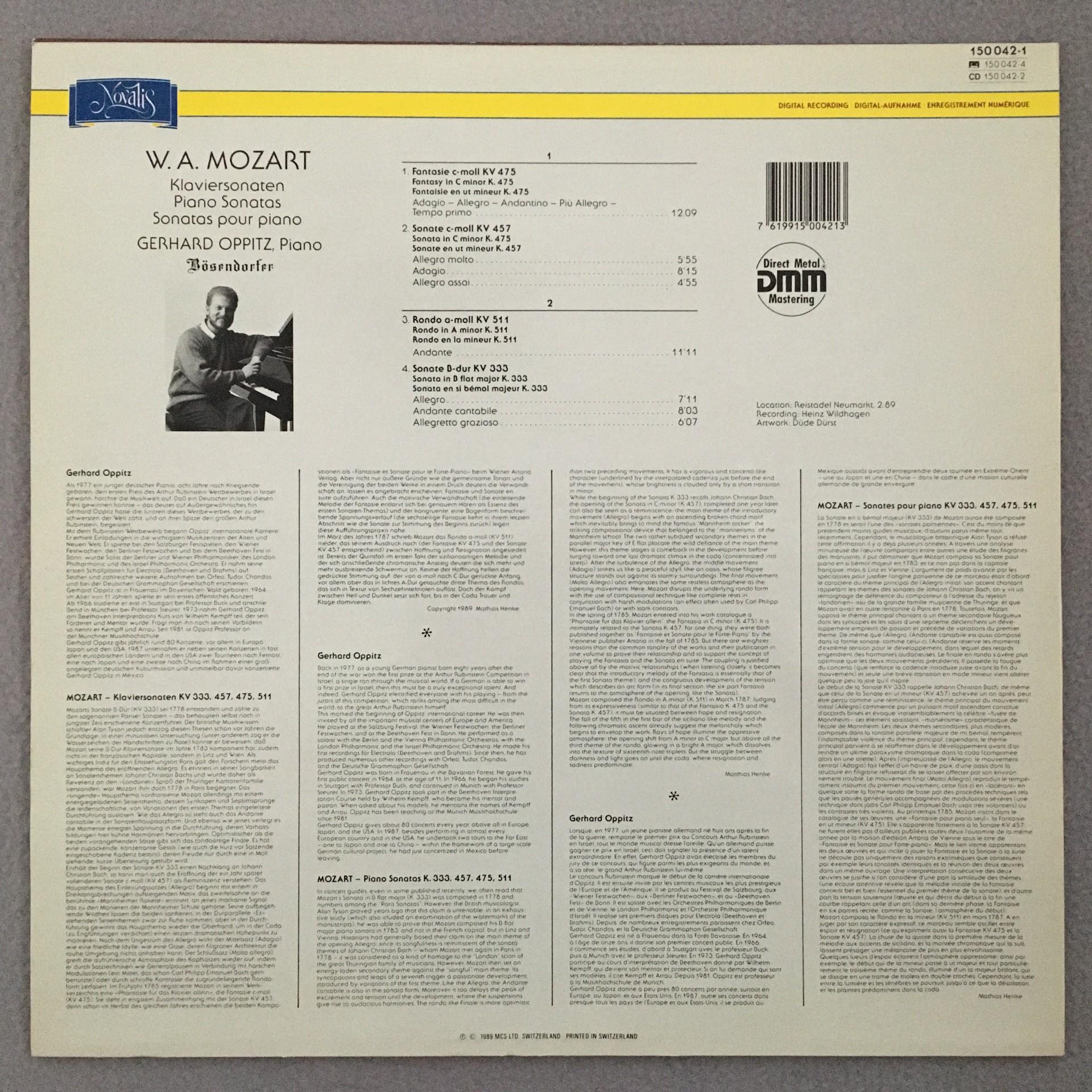 P623 Mozart Fantasy Sonatas Rondo Oppitz Novalis 150 042-1 Digital Stereo
