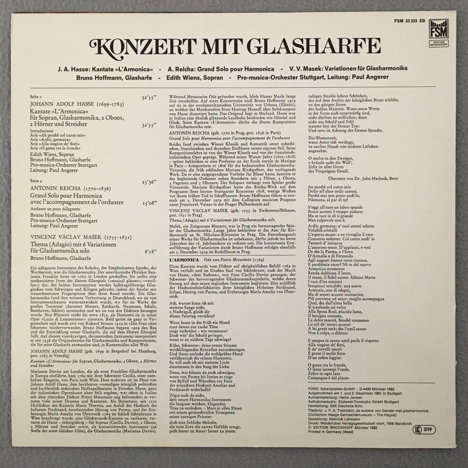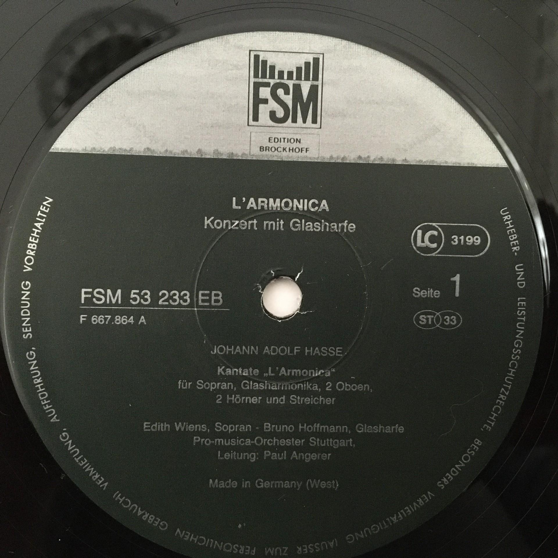 P625 Glass Harmonica Hoffmann Hasse Cantata Reicher VOX FSM 53 233 EB Stereo