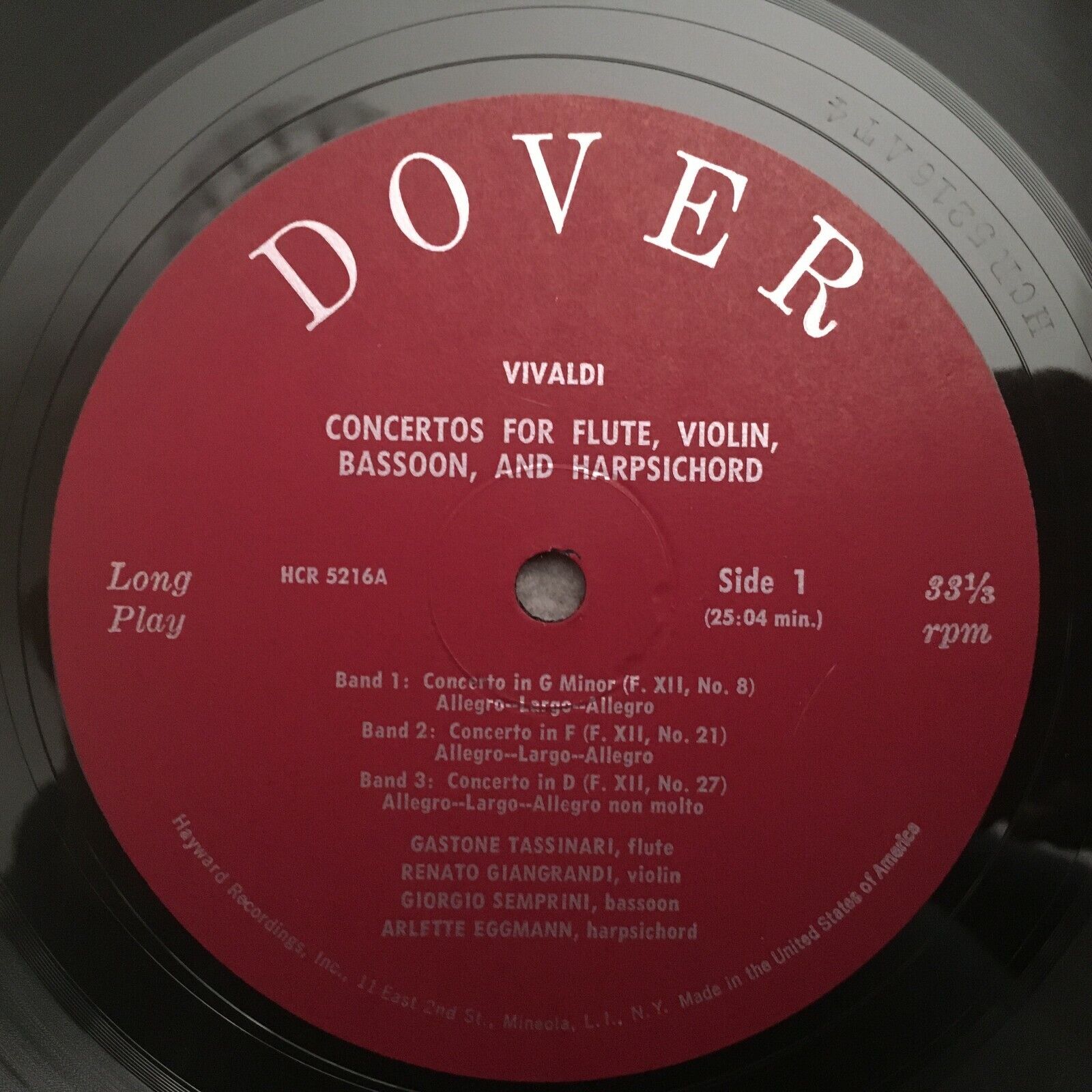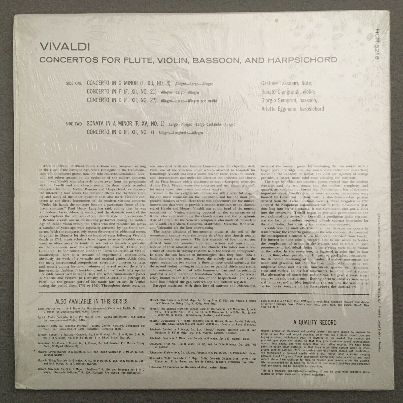 V136 Vivaldi Flute Concertos Tassinari Eggmann Giangrandi Dover HCR-5216