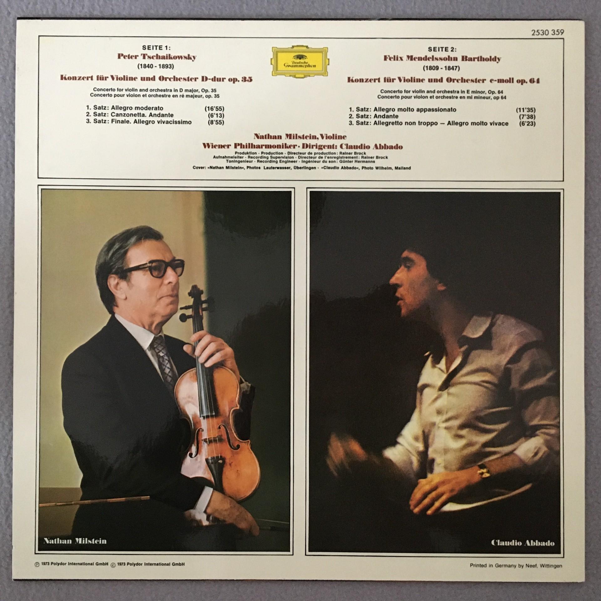 P668 Mendelssohn Tchaikovsky Violin Concertos Milstein Abbado DGG 2530 359 Ster