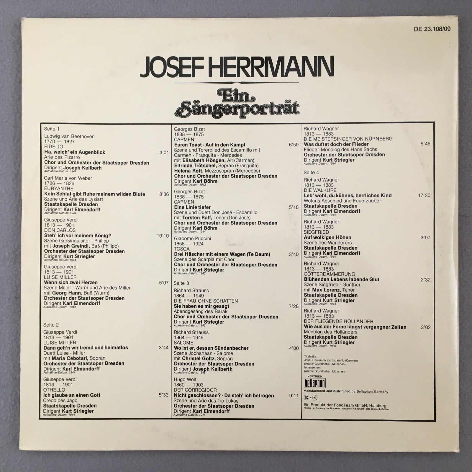 R135 Josef Herrmann Ein Sängerporträt Keilberth 2LP Acanta DE 23.108/09