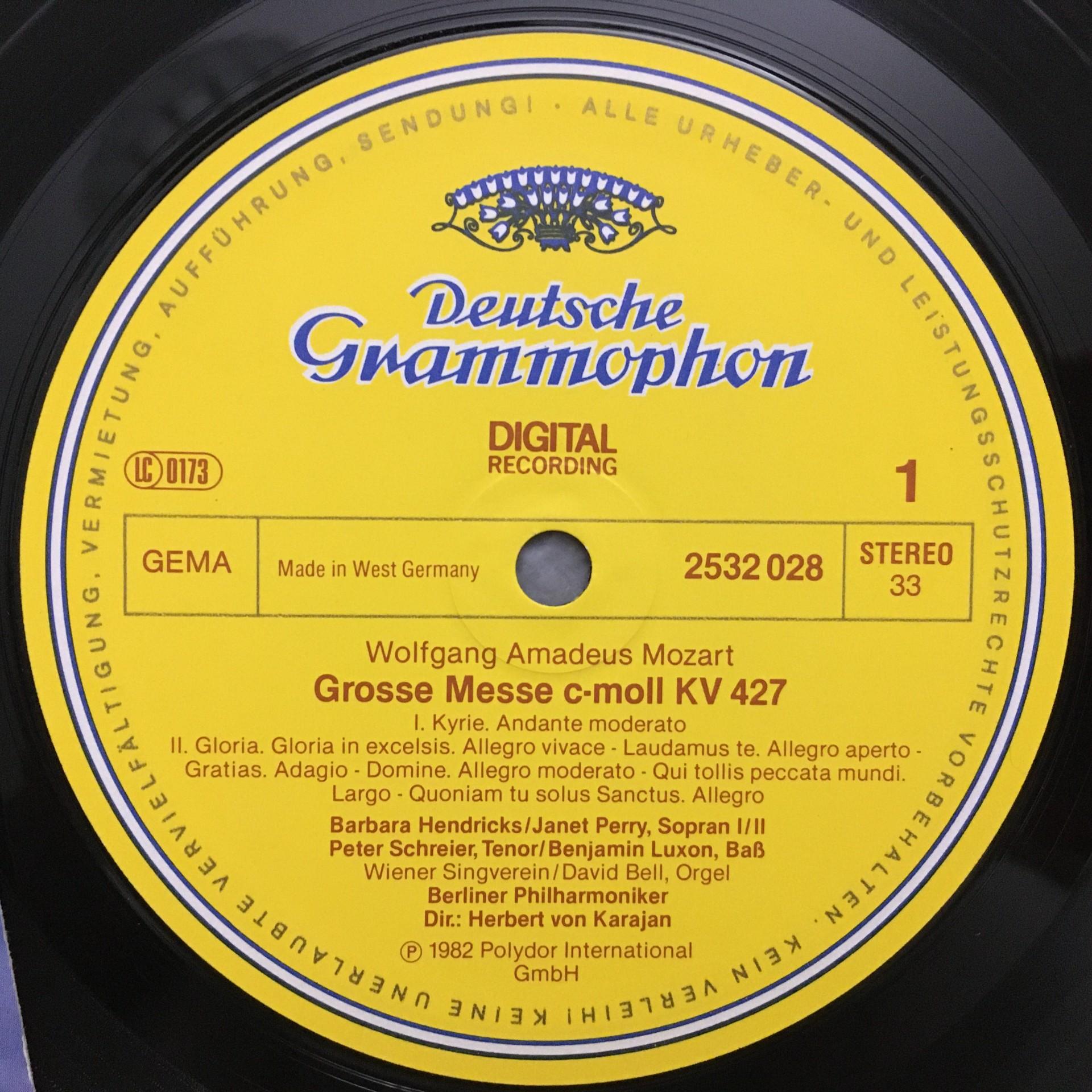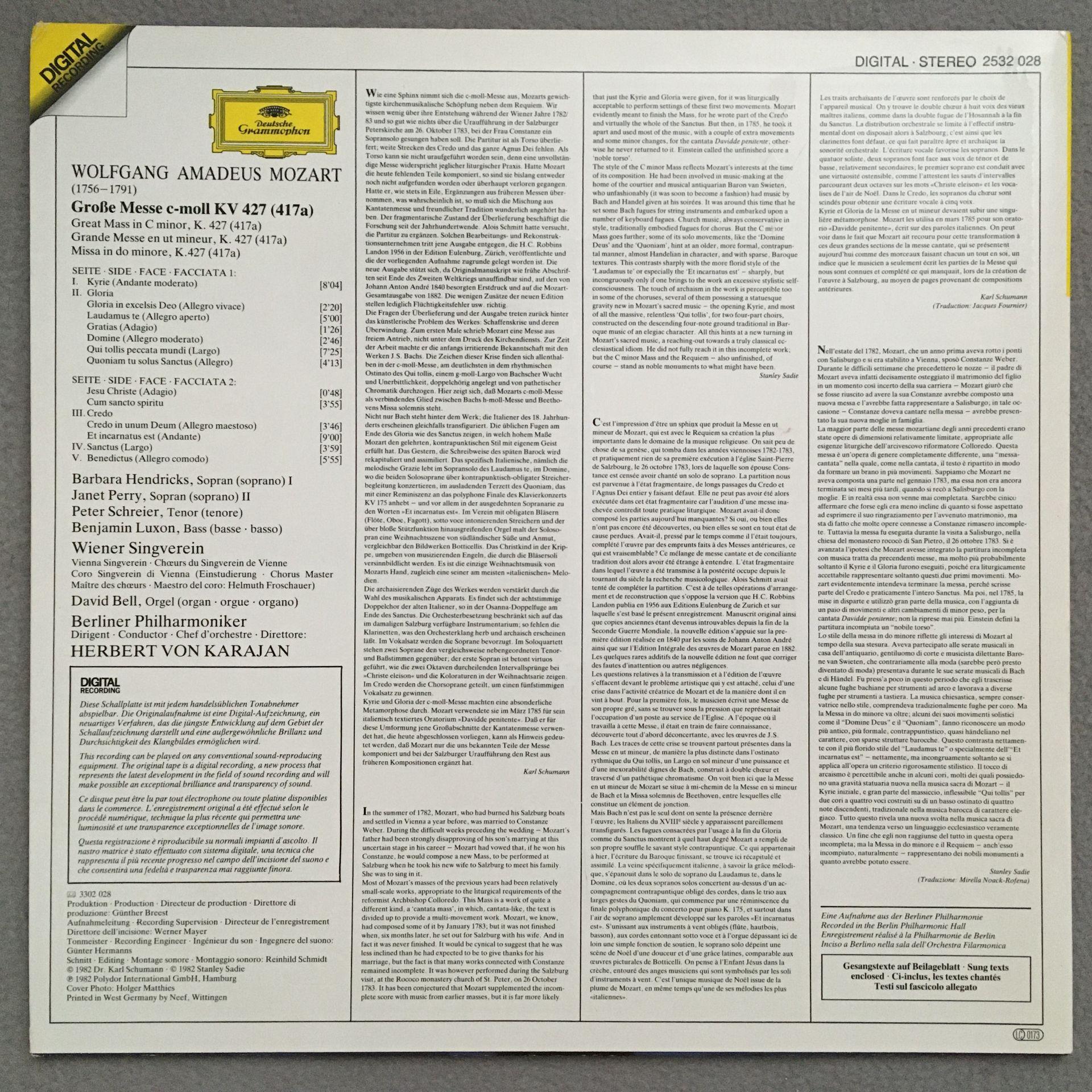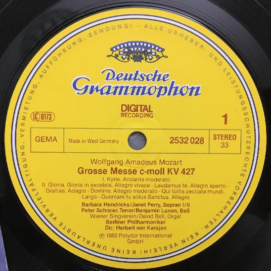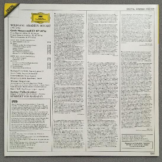 P678 Mozart Great Mass Hendricks Perry Schreier Karajan DGG 2532 028 Digital St