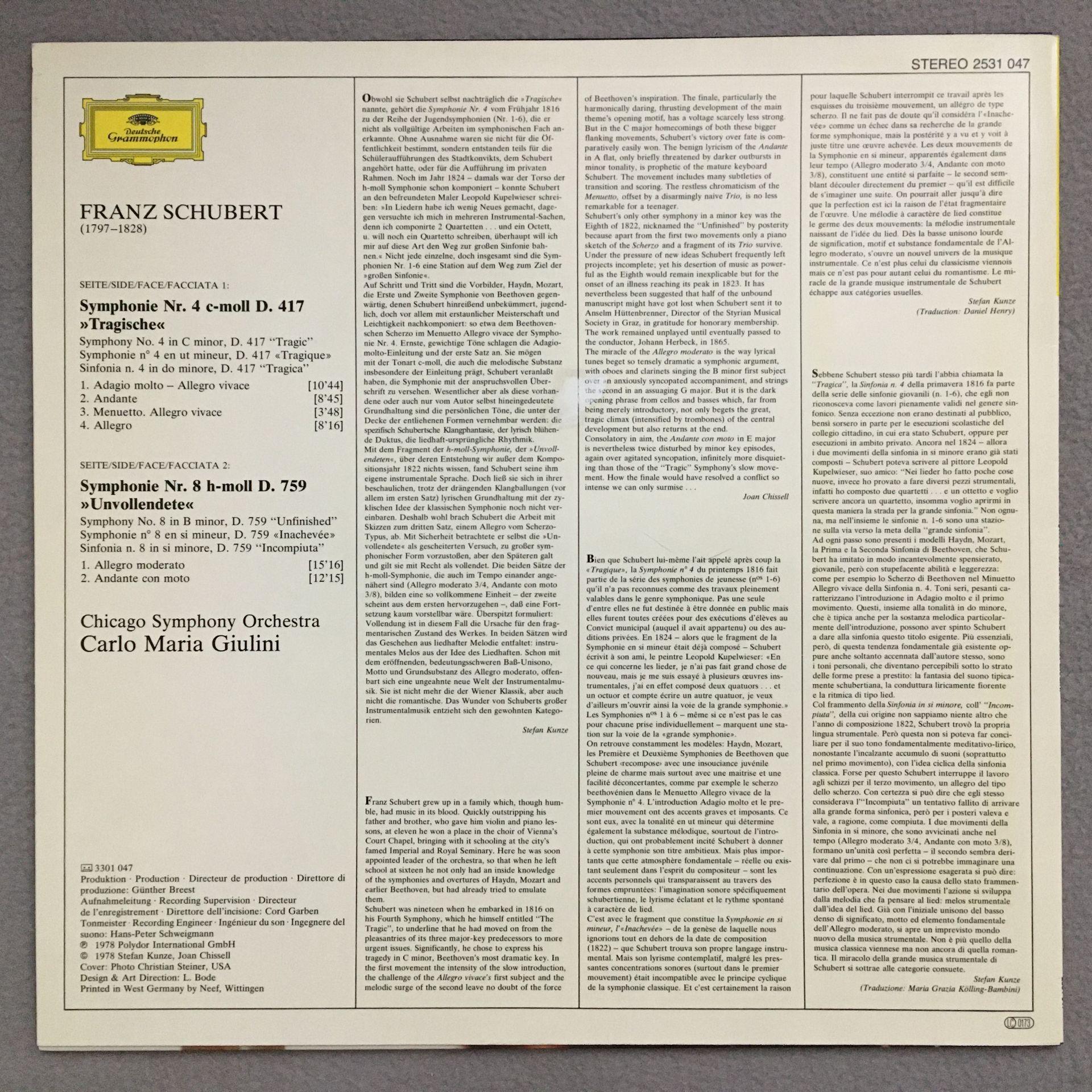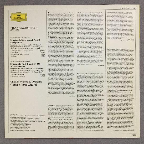 P690 Schubert Symphonies No.8 & No.4 Giulini DGG 2531 047 Stereo