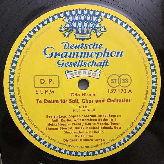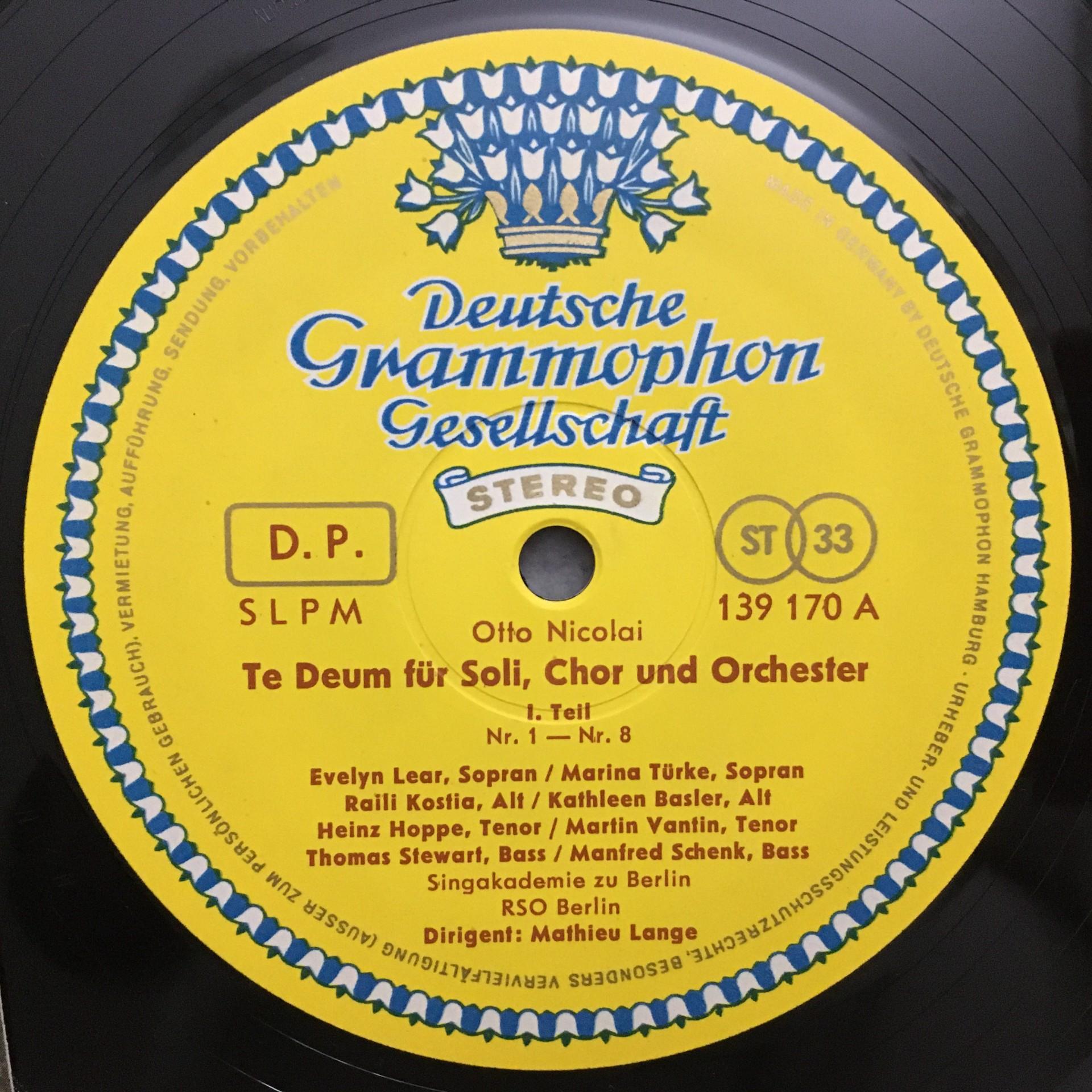 P696 Nicolai Te Deum Lange DGG 139 170 SLPM Stereo Tulip ED1