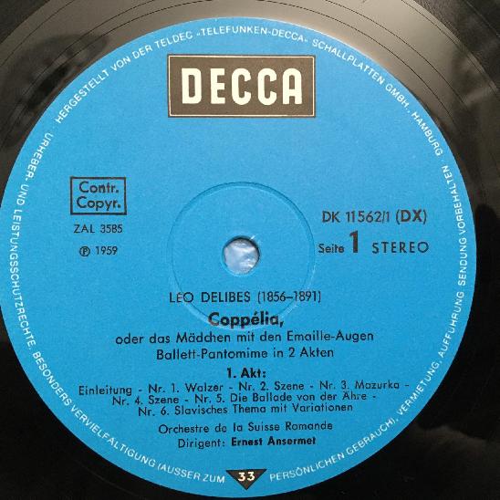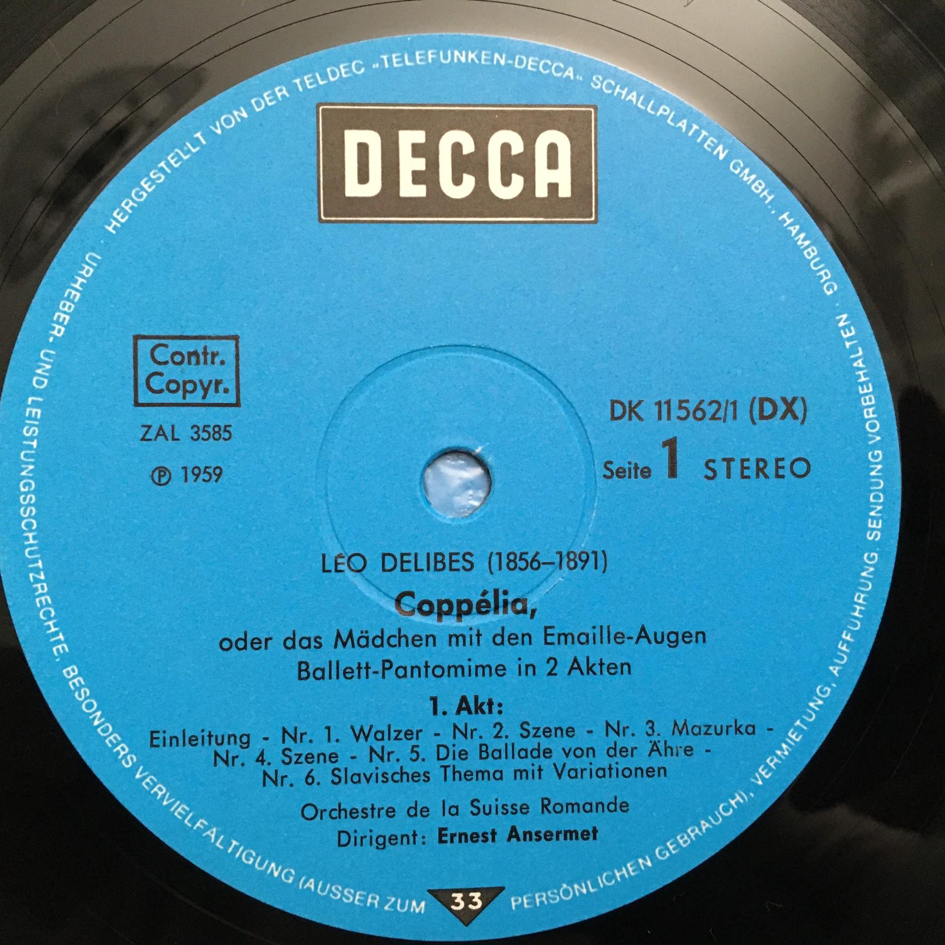 D895 Delibes Coppelia Ansermet 2LP DECCA DK 11562/1-2 Stereo