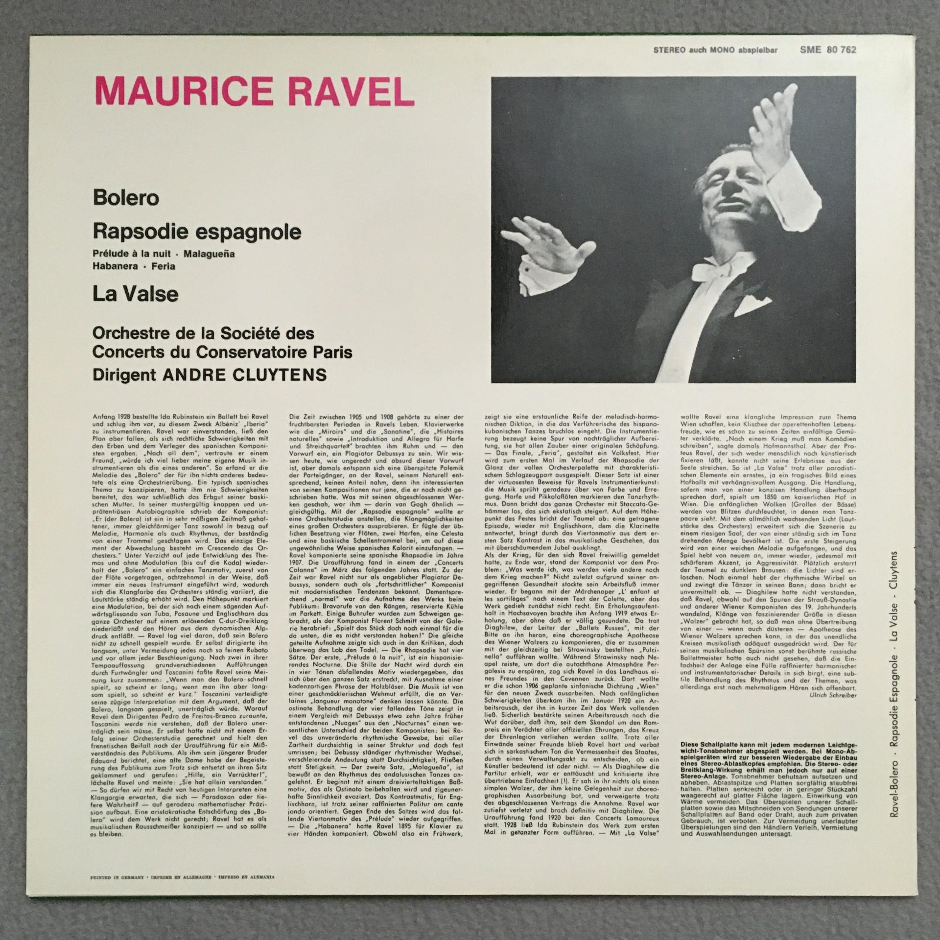 P702 Ravel Bolero Rhapsody Espagnole Cluytens EMI SME 80 762 Stereo