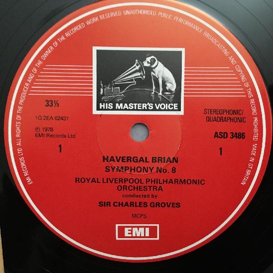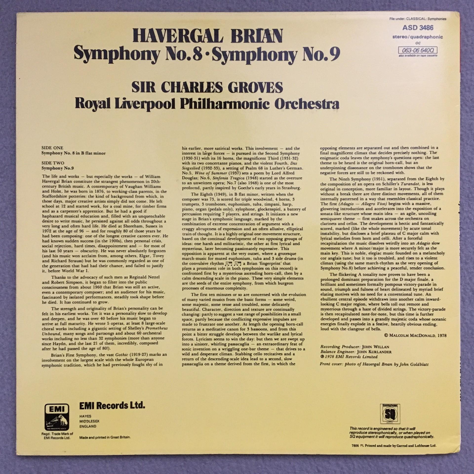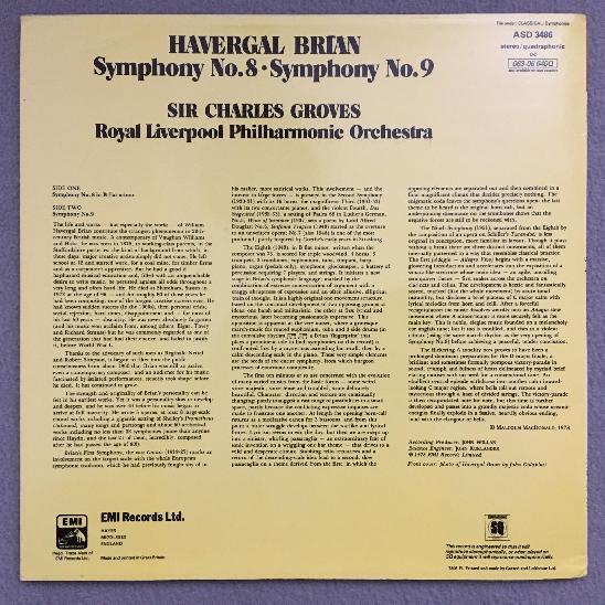 P704 Brian Symphony No.8 & No.9 Groves EMI ASD 3486 Quadro