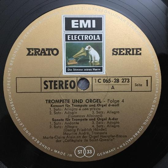 P705 Trumpet & Organ Vol.4 Andre Alain Albinoni Handel EMI 1 C 065-28 273 Stereo