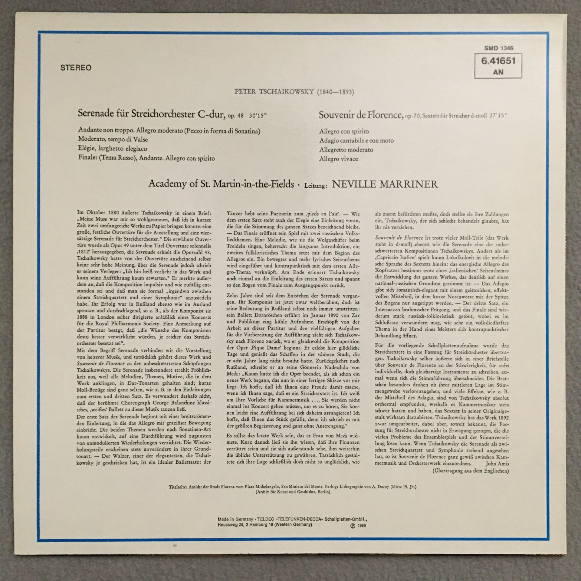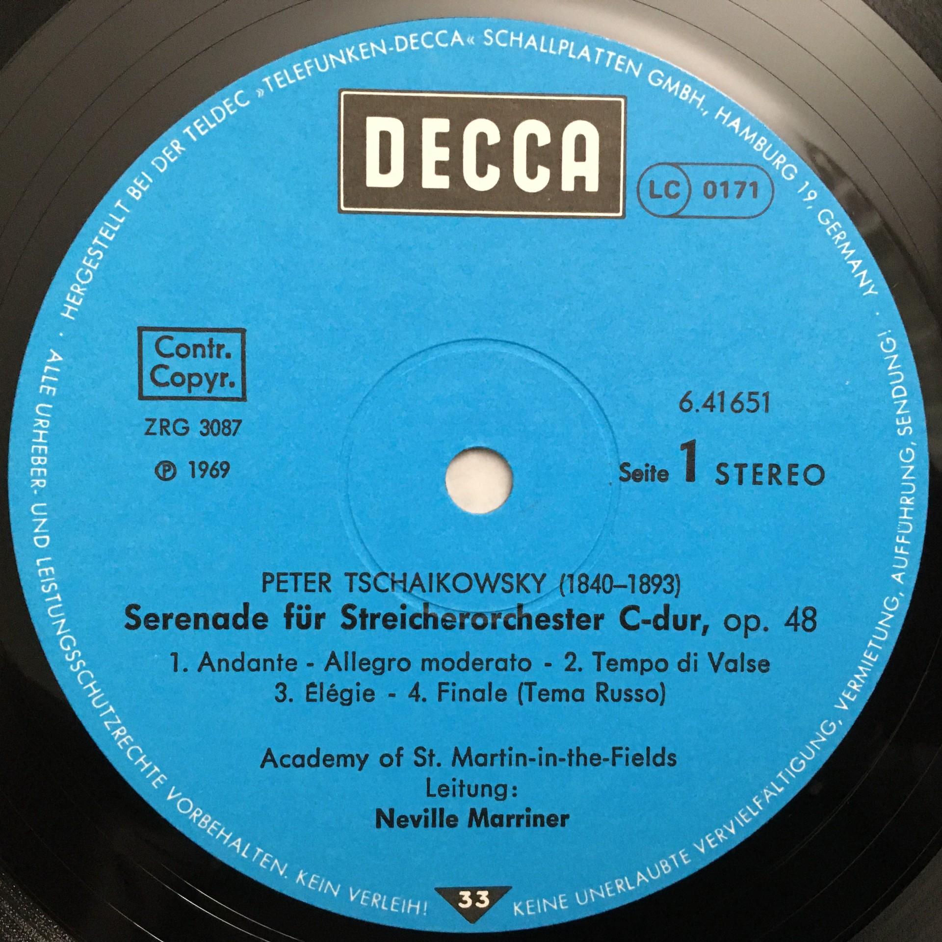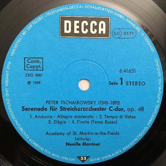 P706 Tchaikovsky String Serenade Marriner DECCA 6.41651 AN Stereo