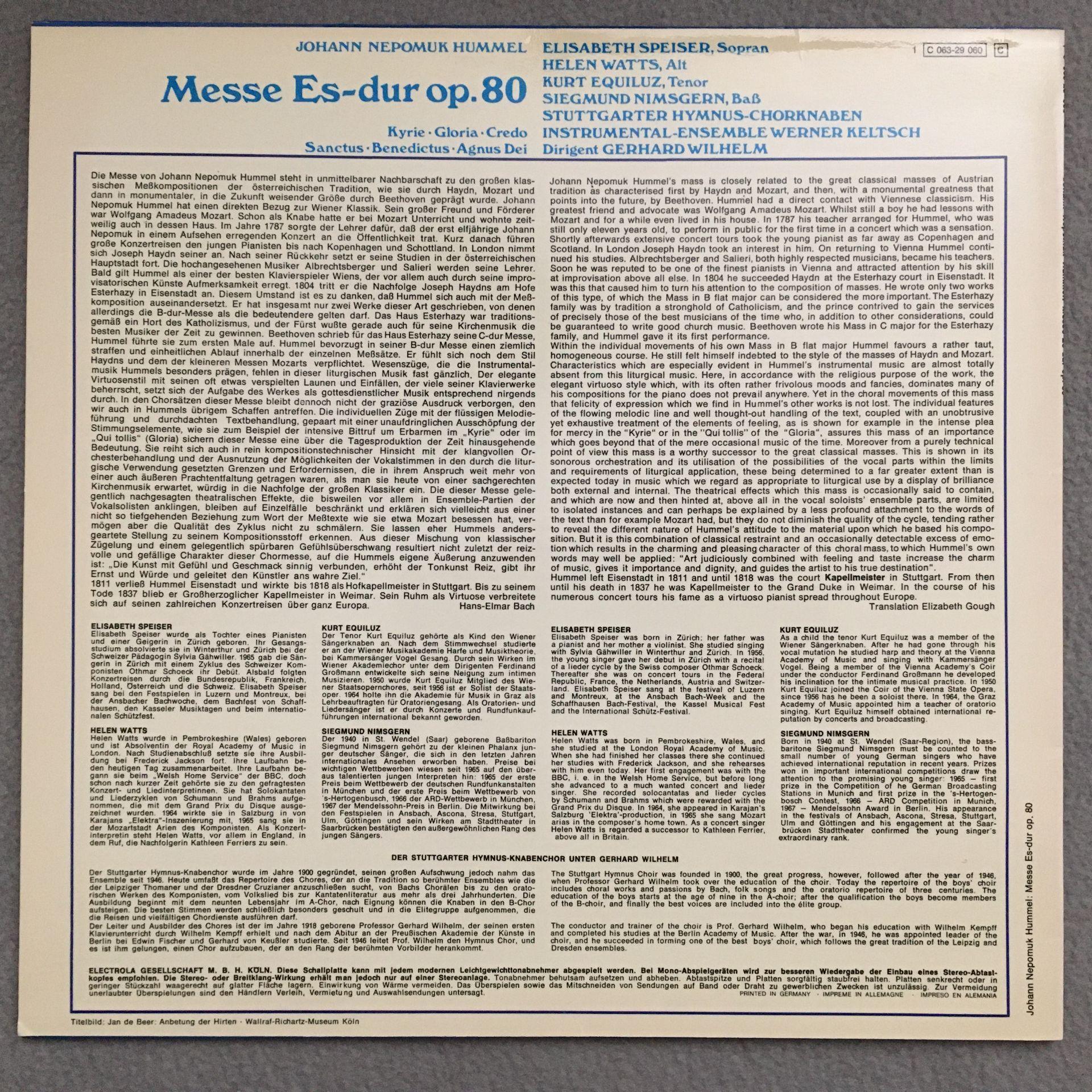 P710 Hummel Mass Speiser Watts Wilhelm EMI 1 C 063-29 060 Stereo
