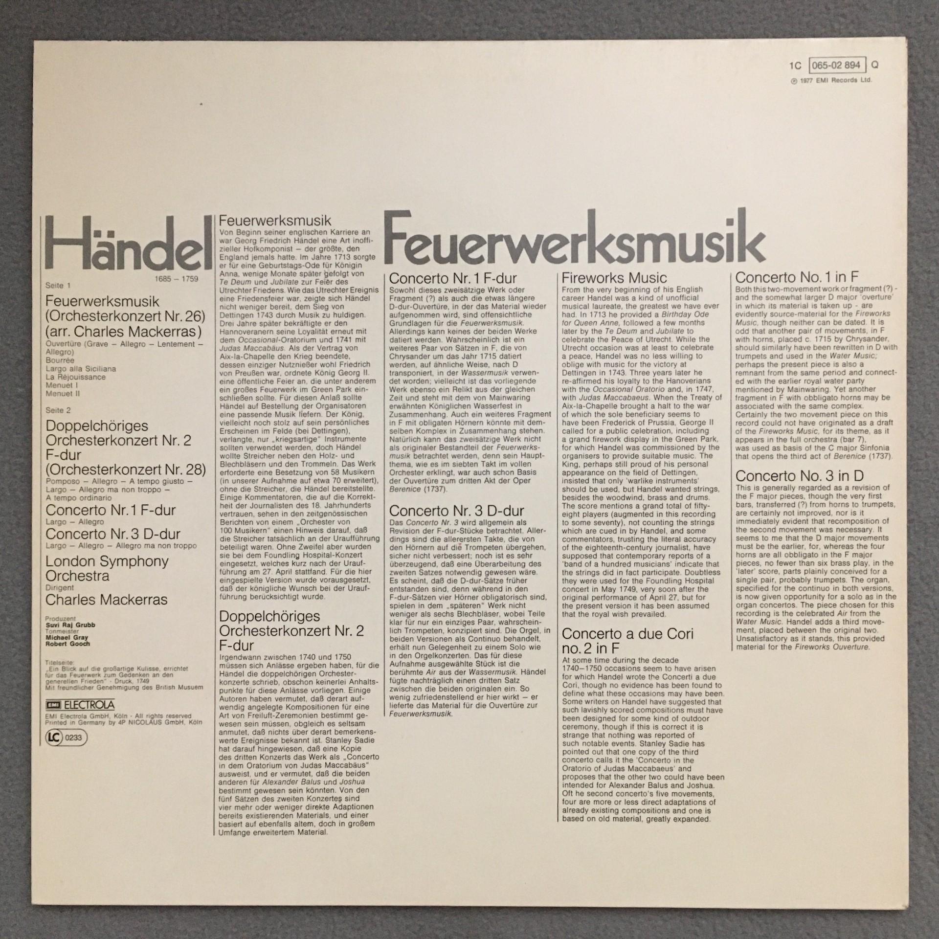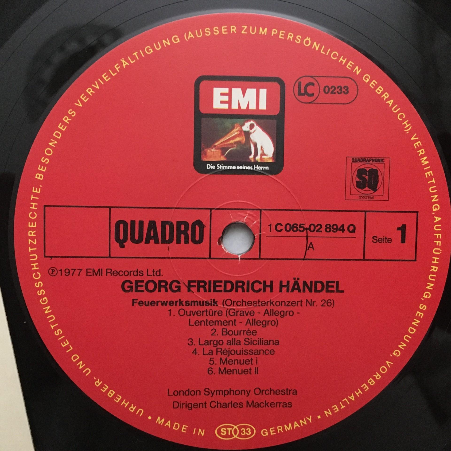 R654 Handel Fireworks Music Concertos Mackerras EMI 1C 065-02 894 Q Quadro