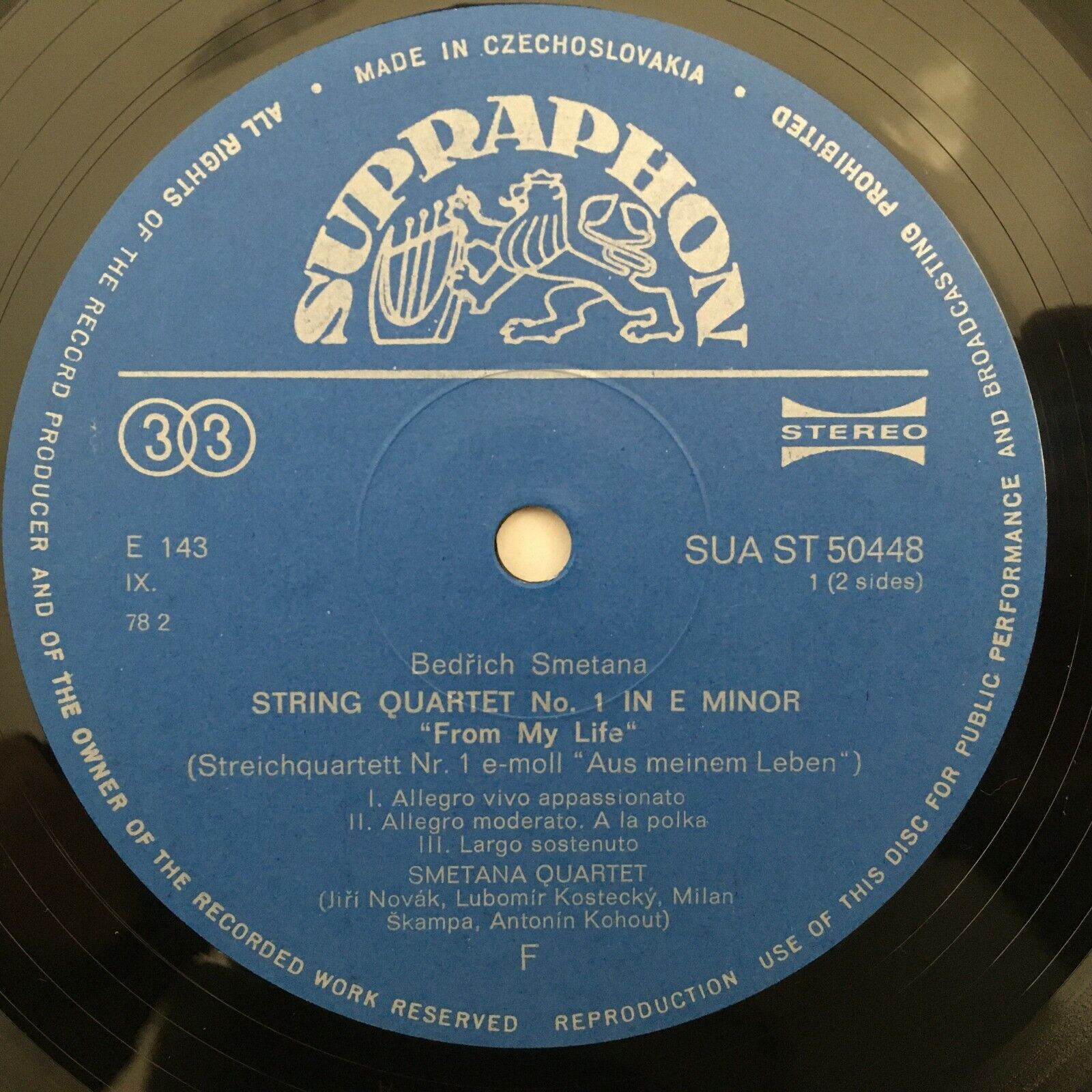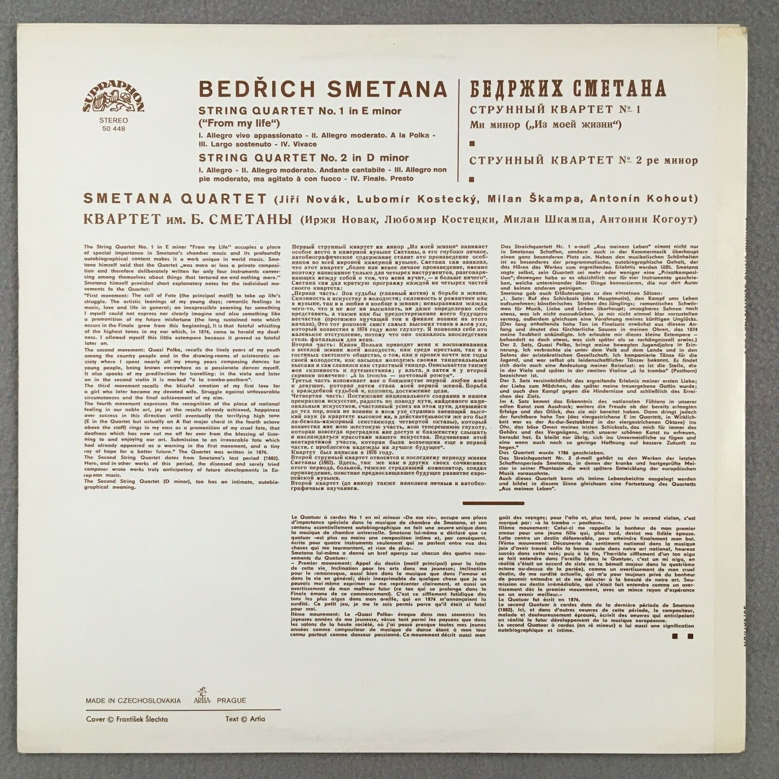 R123 Smetana String Quartets No.1 & 2 Smetana Quartet Supraphon 50 448 Stereo