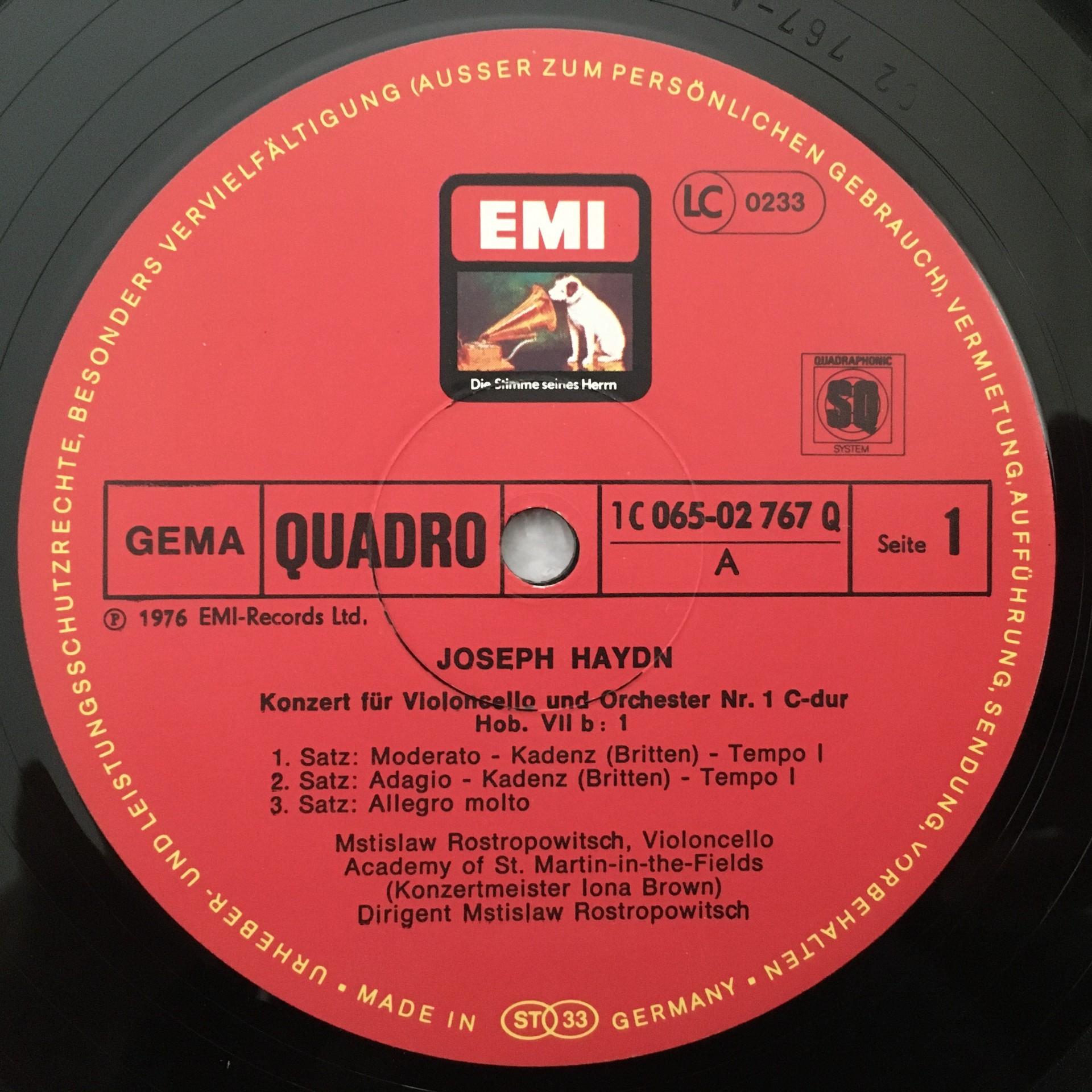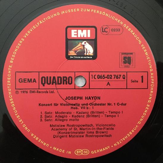 P723 Haydn Cello Concertos Rostropovich Brown EMI 1C 065-02 767 Q Quadro