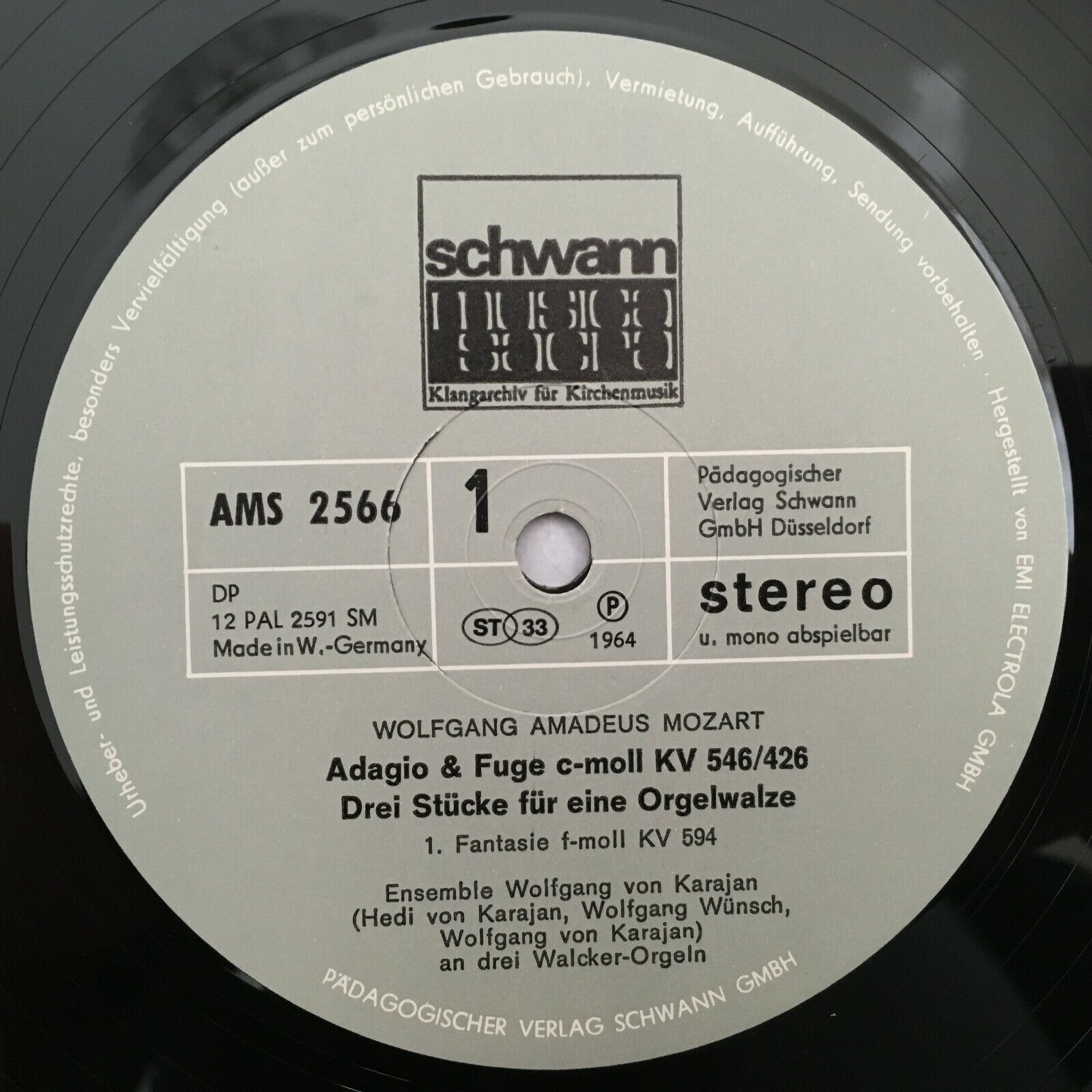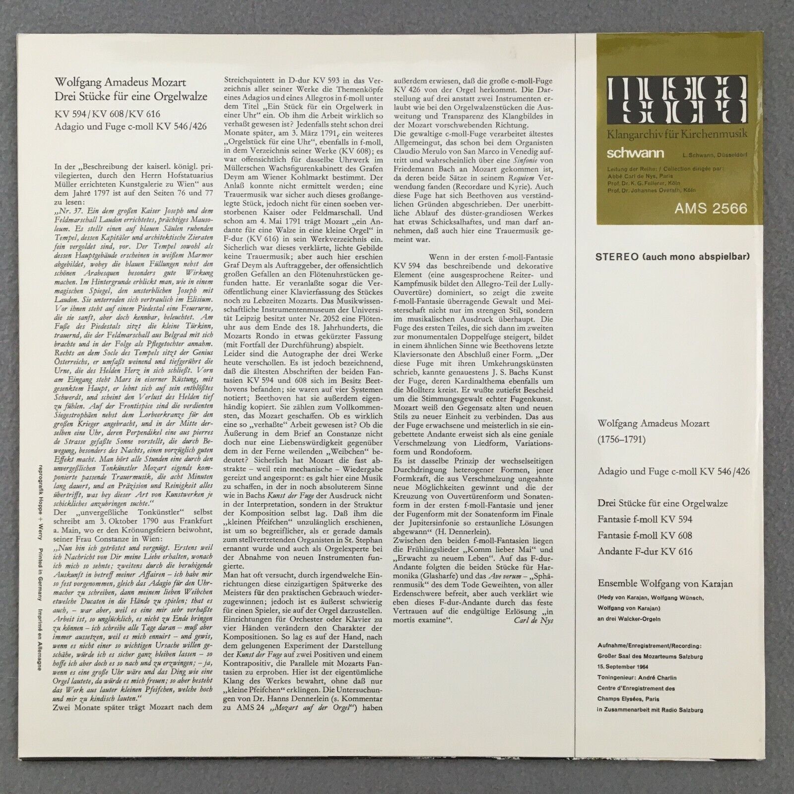 R117 Mozart Adagio & Fugue Organ Fantasies Karajan Ensemble Schwann AMS 2566 St