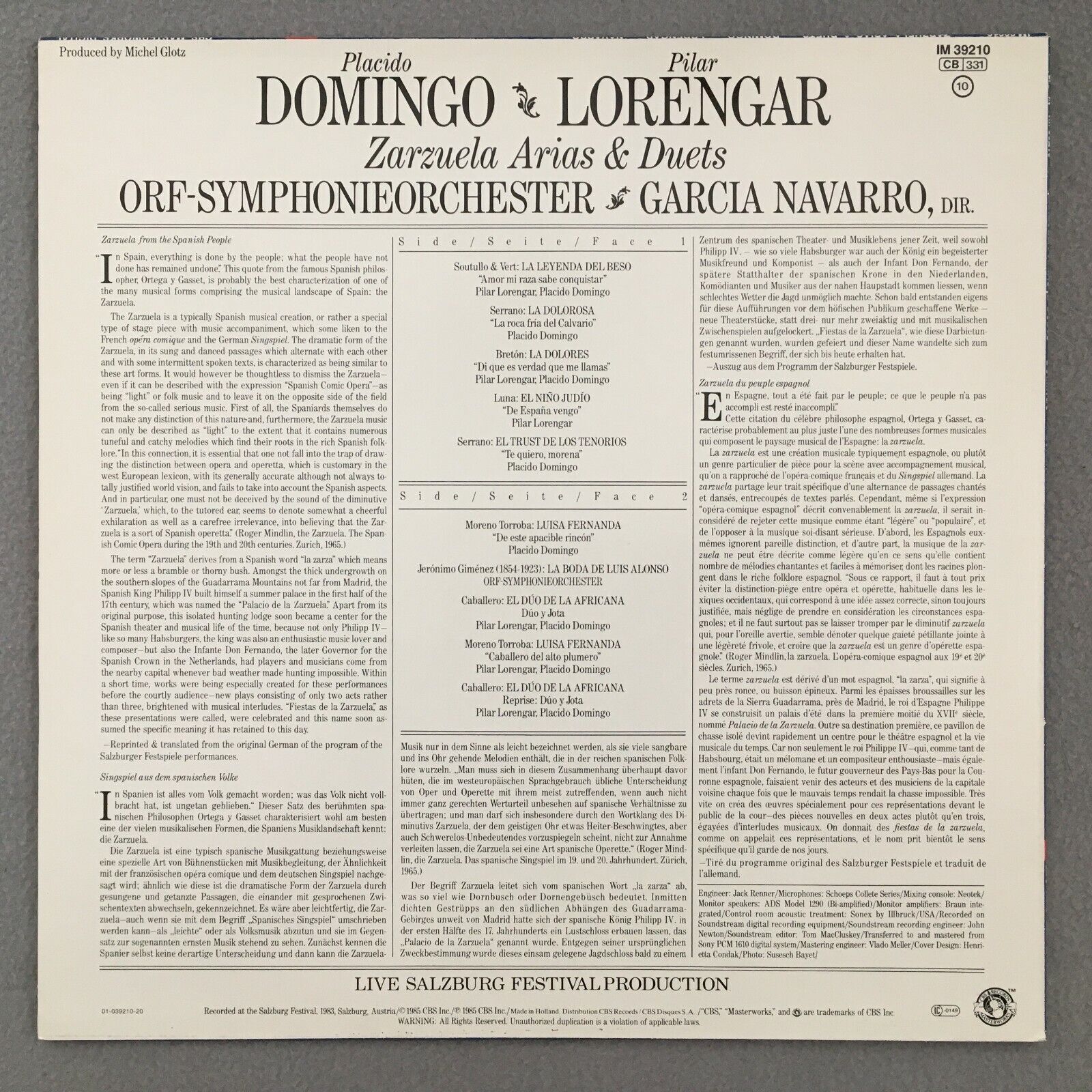 R116 Domingo & Lorengar Arias & Duets Navarro CBS IM 39210 Digital Stereo