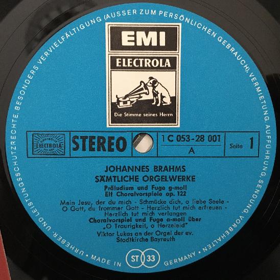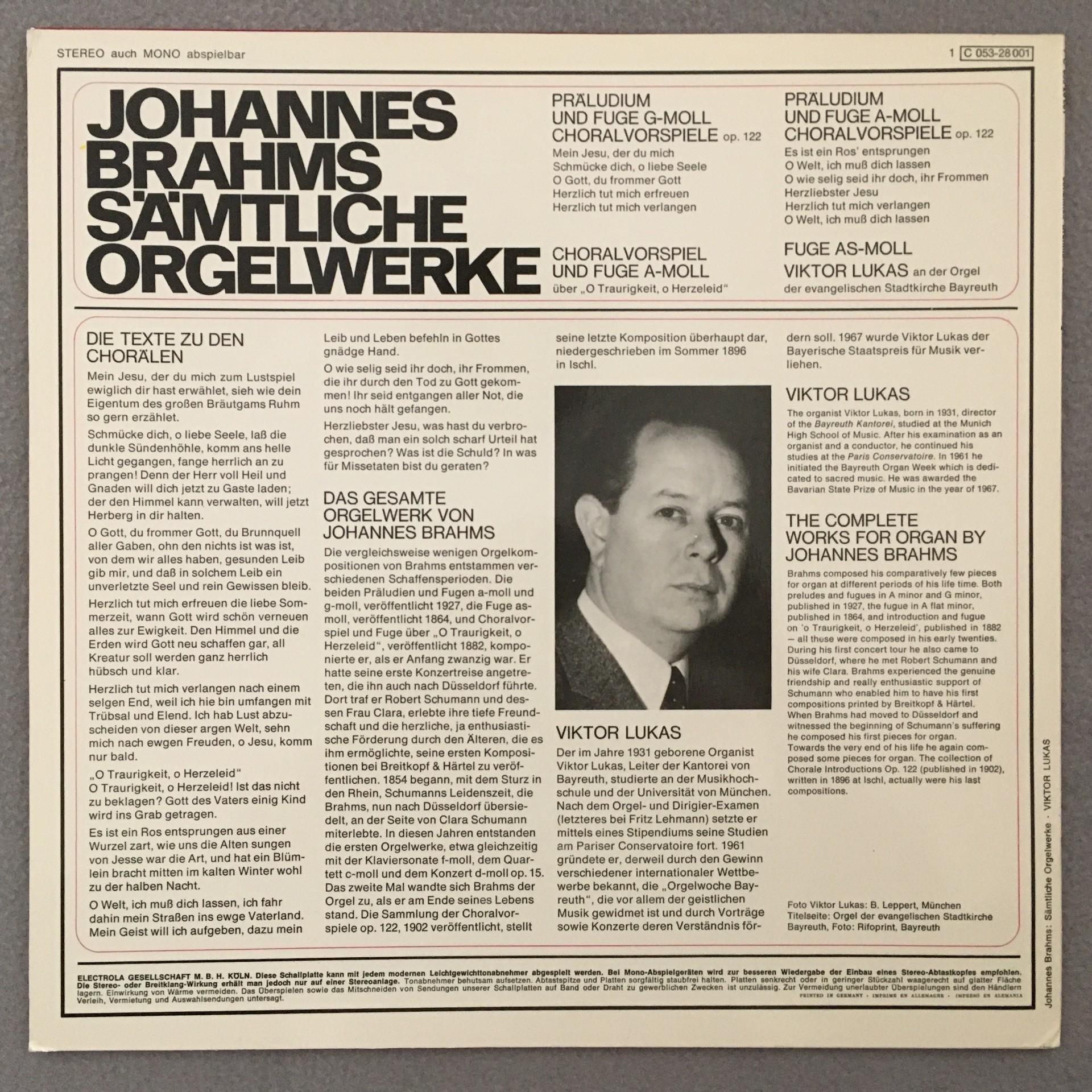 P732 Brahms Complete Organ Works Lukas EMI 1 C 053-28 001 Stereo