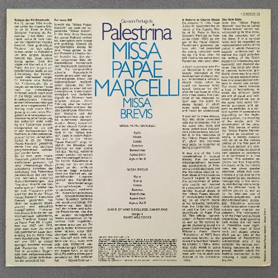 P734 Palestrina Missa Papae Marcelli Missa Brevis Willcocks EMI 1 C 063-02 113 S