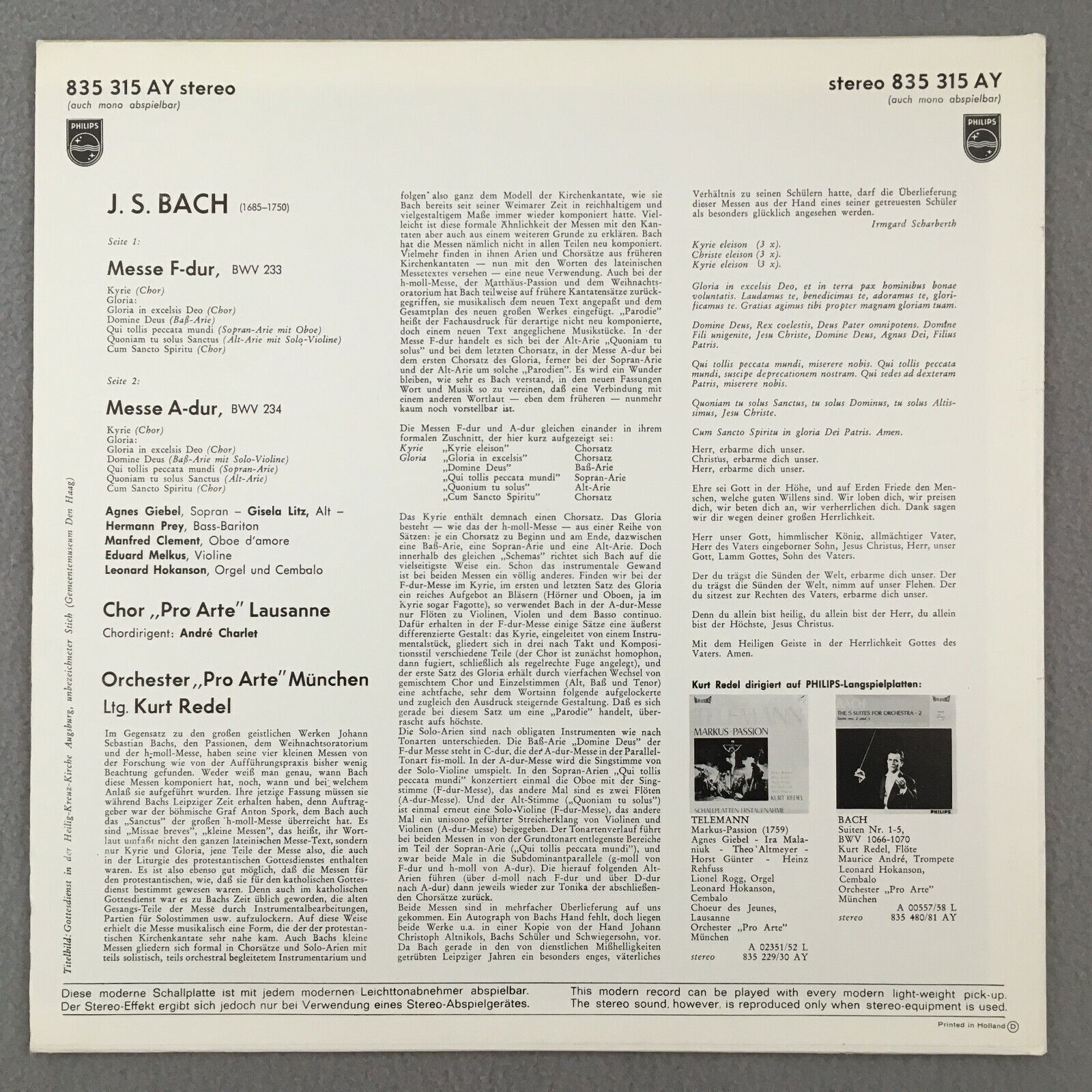 R108 Bach Masses Giebel Prey Melkus Violin Redel Philips 835 315 AY Stereo