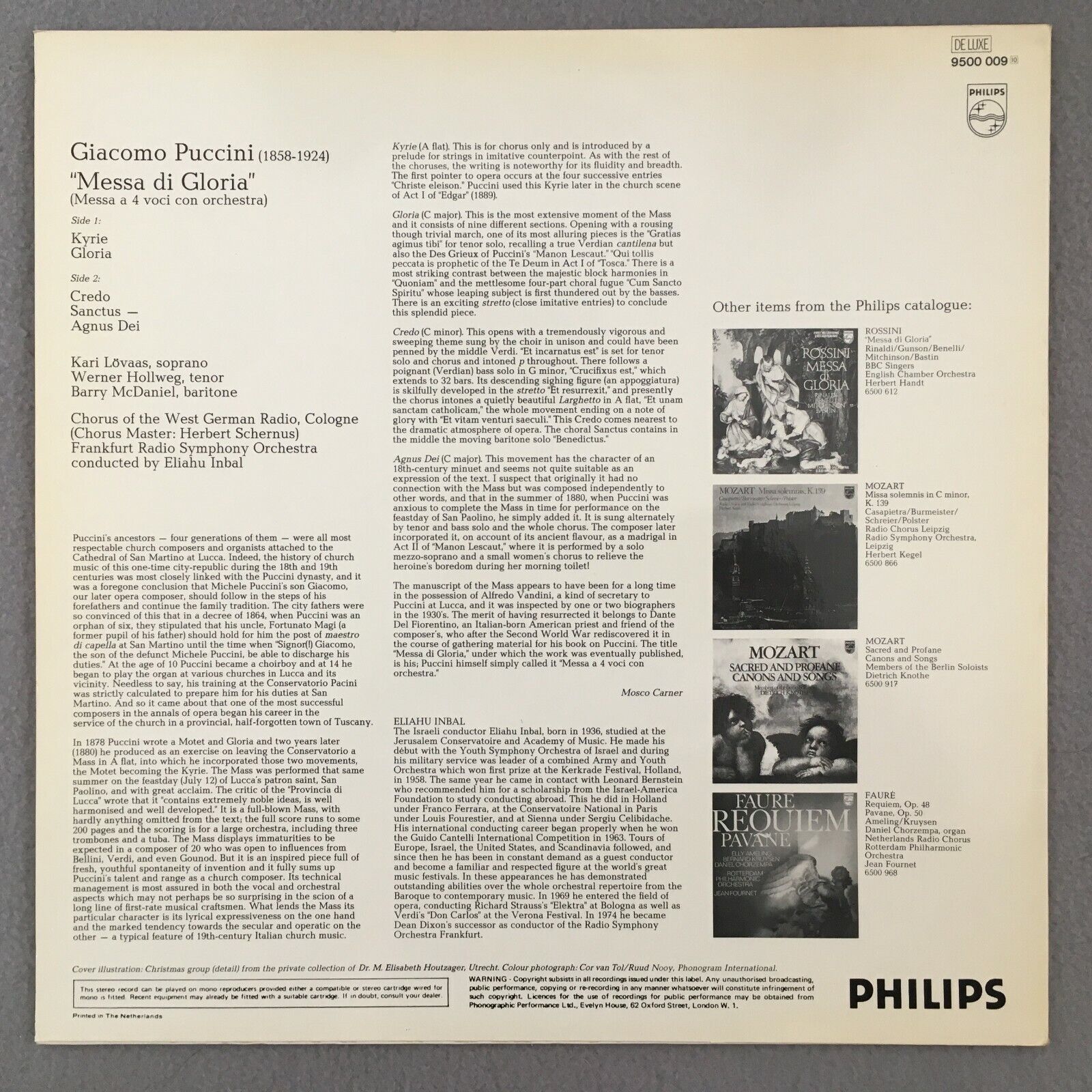 R106 Puccini Gloria Mass Hollweg Lövaas Inbal Philips 9500 009 Stereo