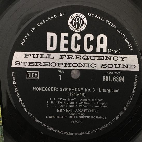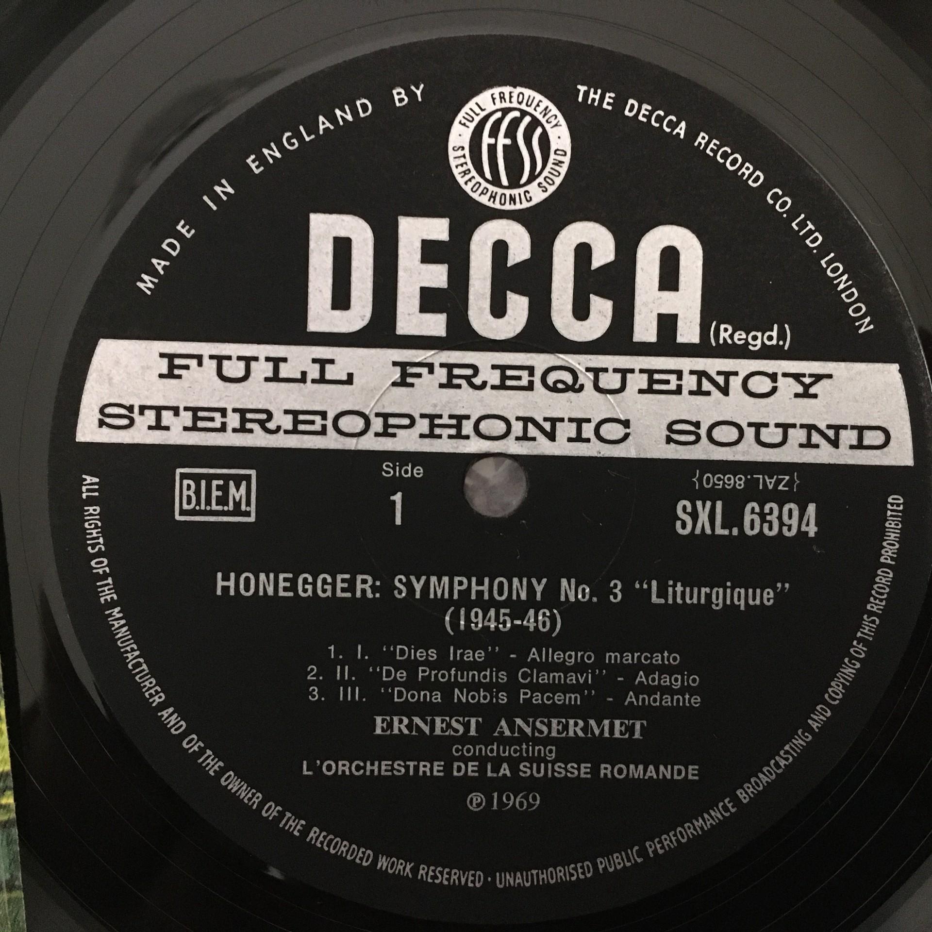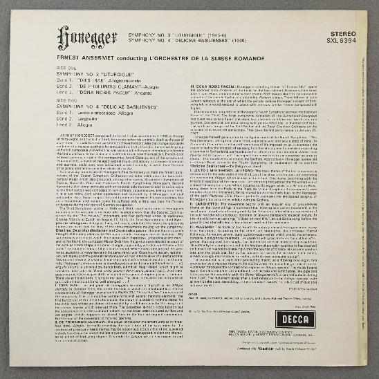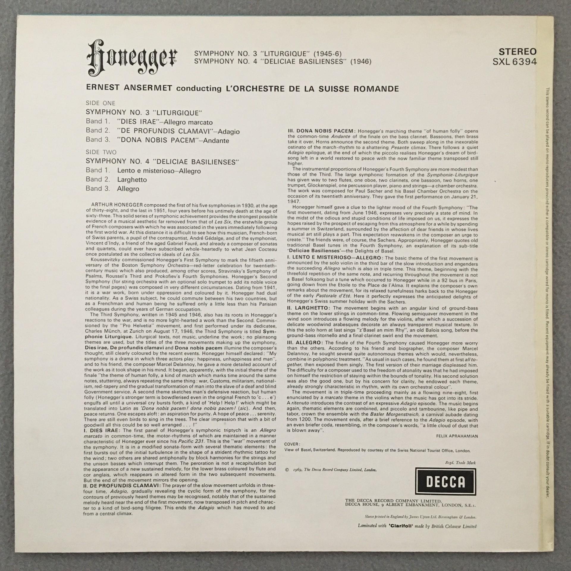 P735 Honegger Symphonies No.3 & No.4 Ansermet DECCA SXL 6394 Stereo WB