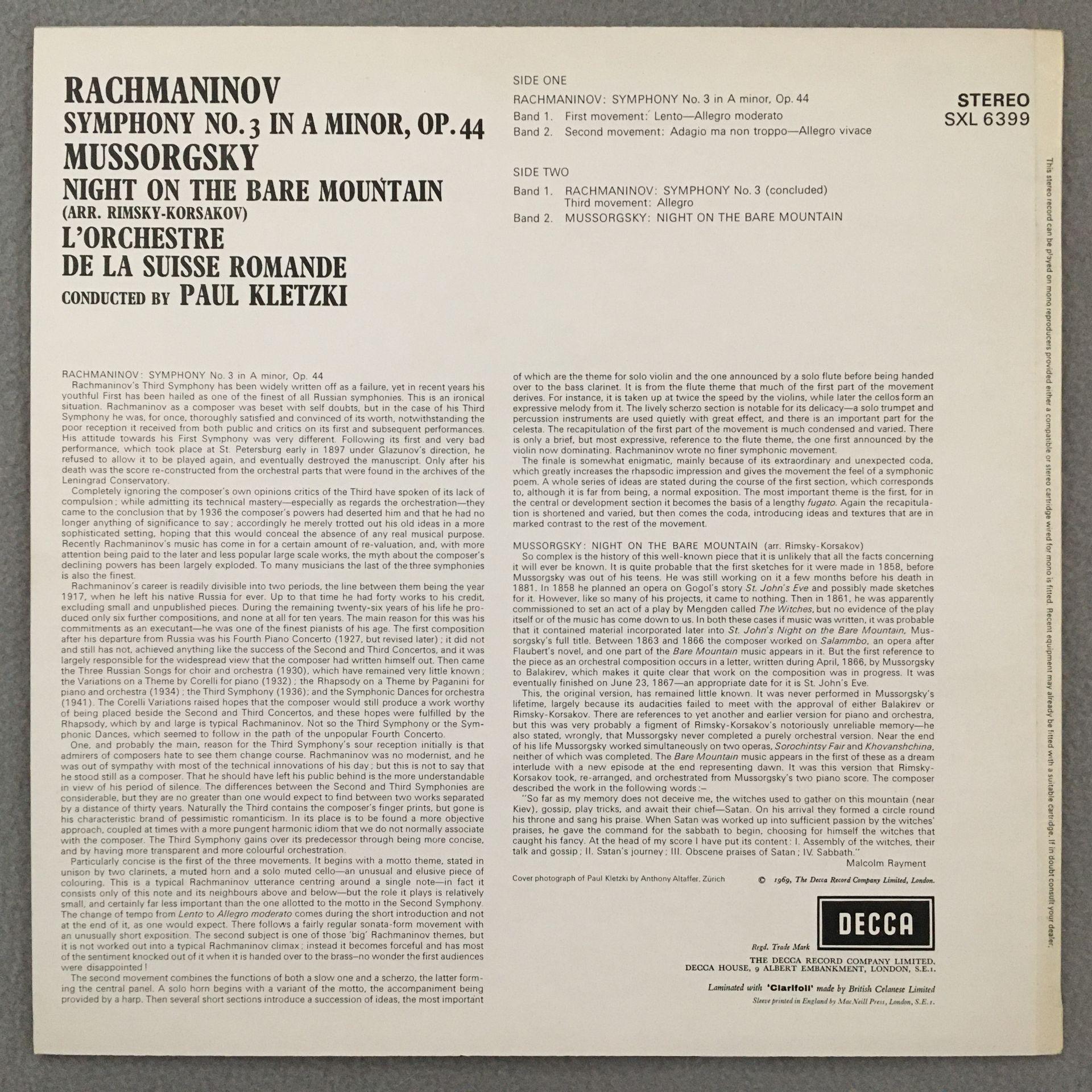 P743 Rachmaninov Symphony Mussorgsky Kletzki DECCA SXL 6399 Stereo WB