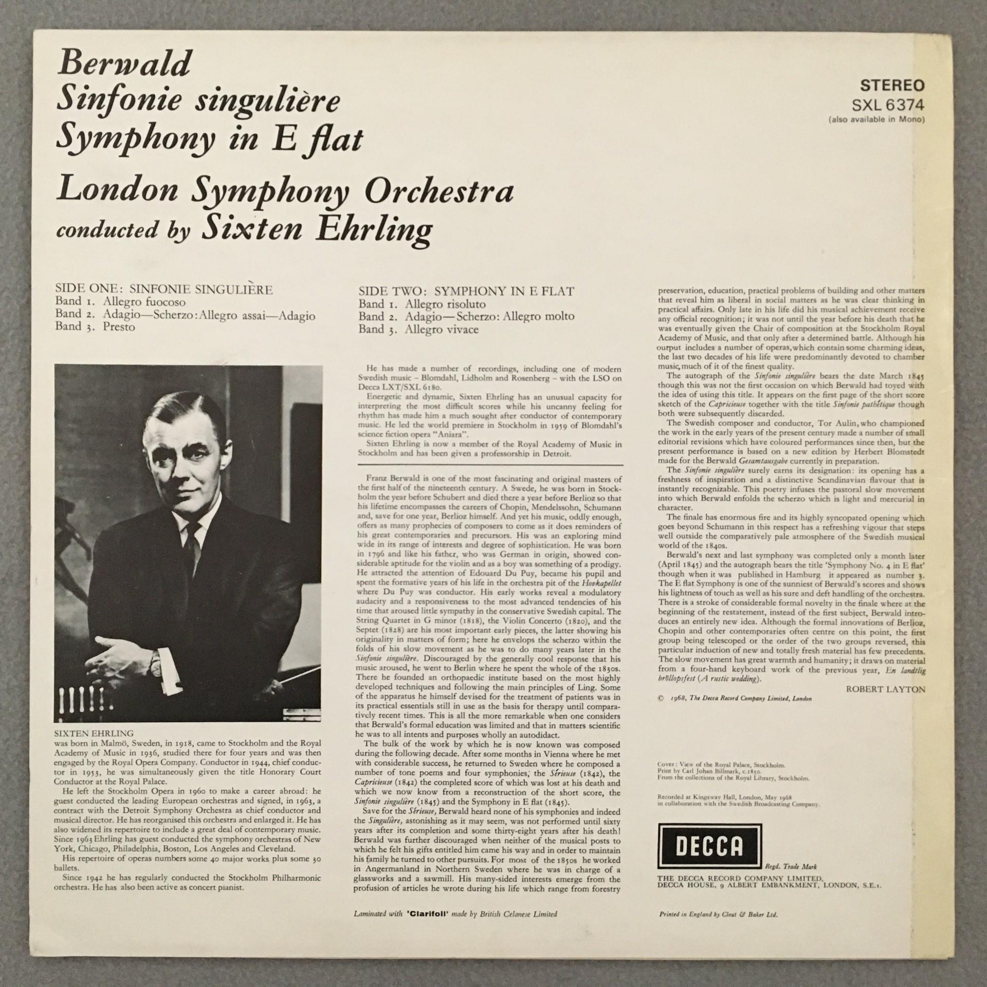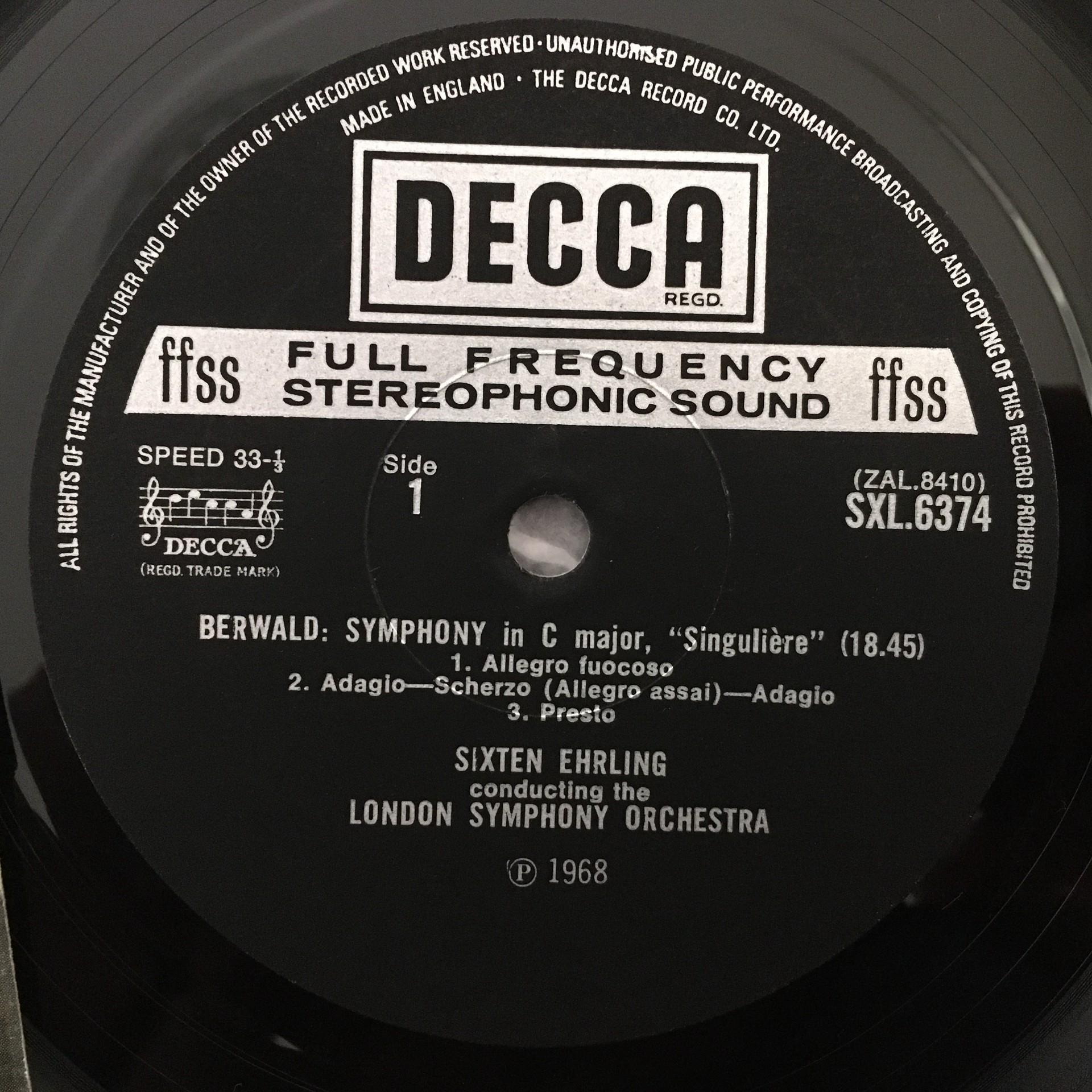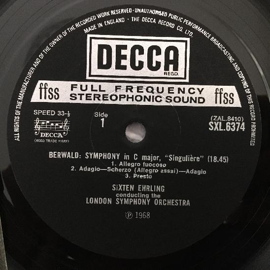P744 Berwald Symphony Ehrling DECCA SXL 6374 Stereo WB