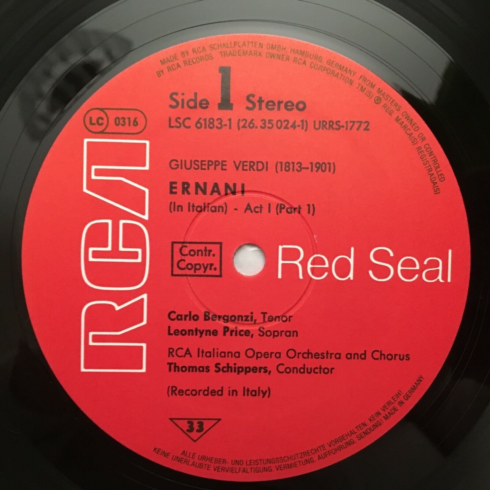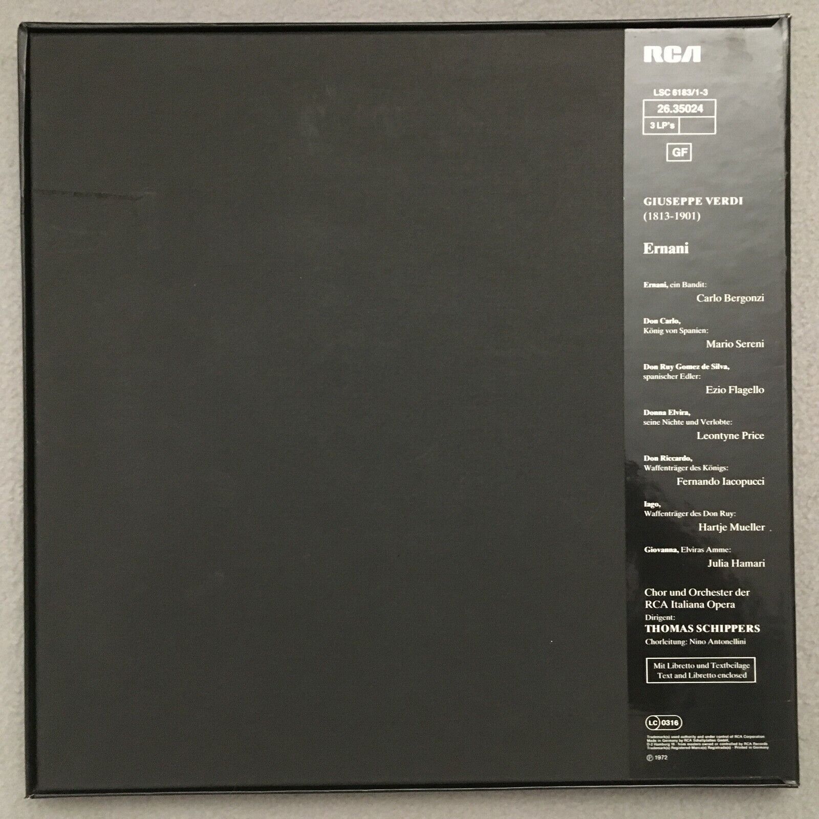 B940 Verdi Ernani Price Bergonzi Sereni Schippers 3LP RCA LSC 6183/1-3 Stereo
