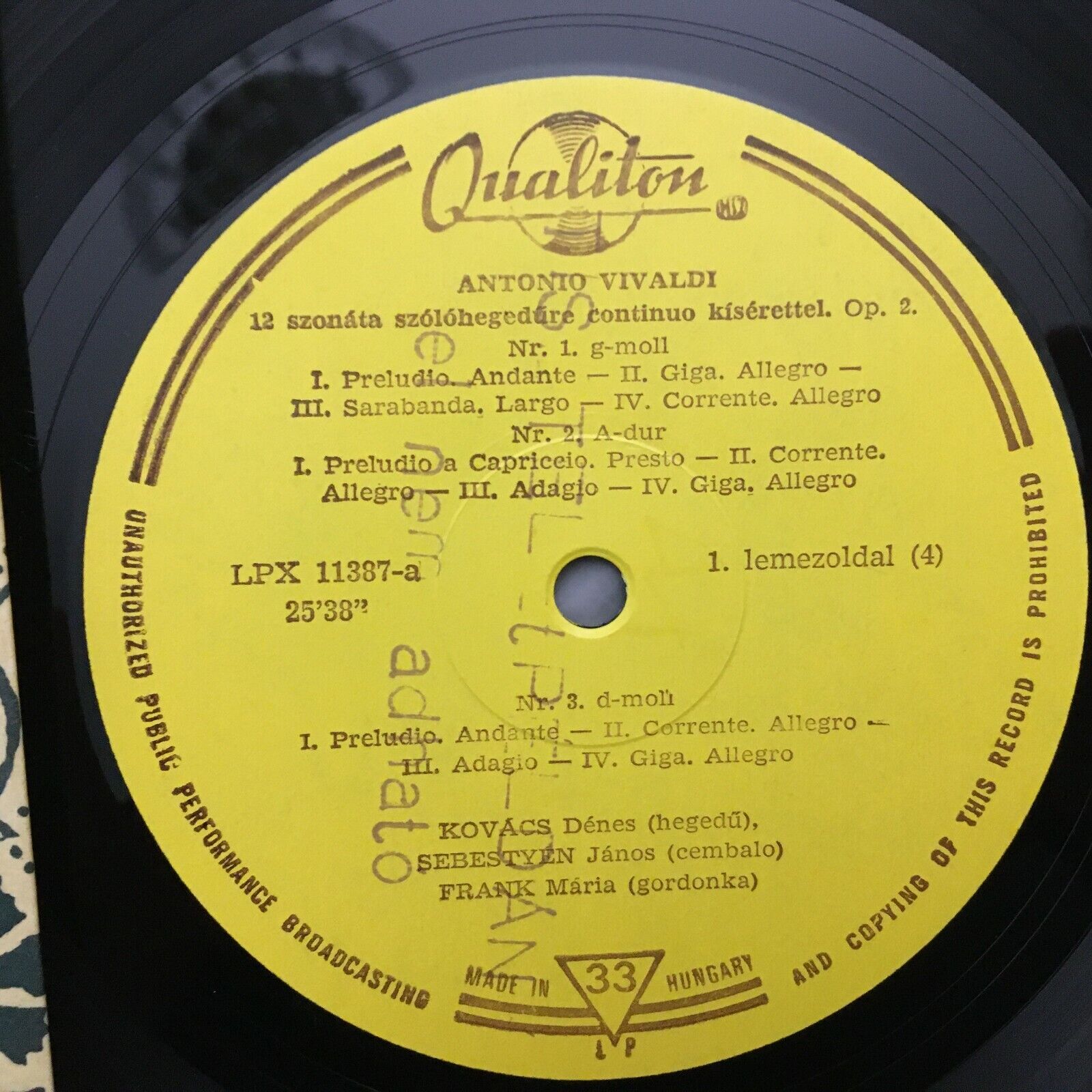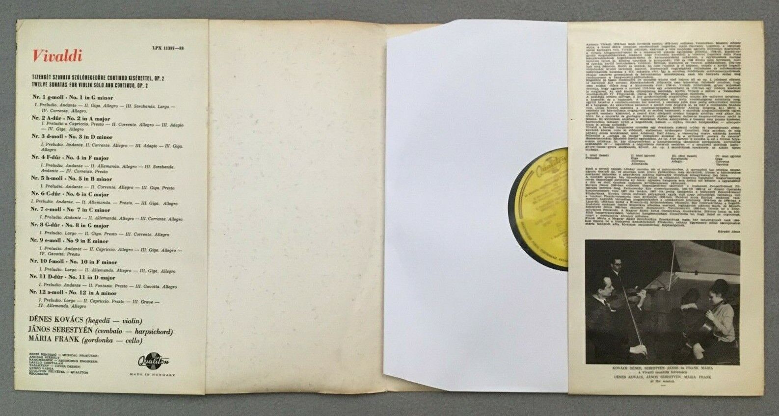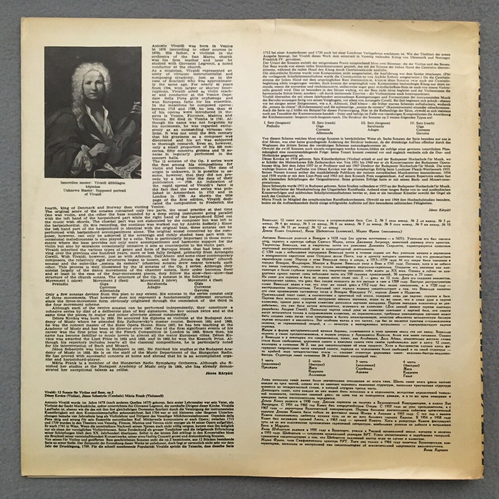 R095 Vivaldi 12 Sonatas Kovacs Sebestyen Frank Qualiton LPX 11387-88