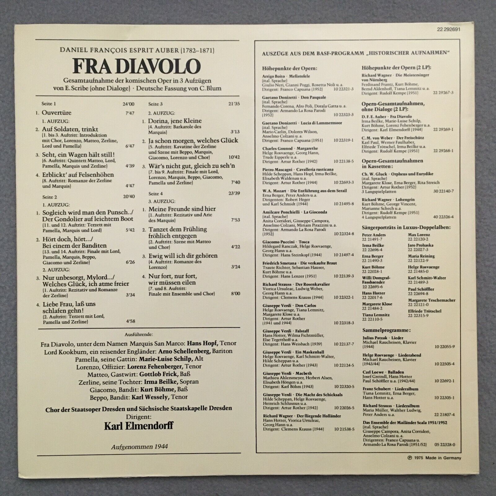 R080 Auber Fra Diavolo Beilke Schilp Böhme Elmendorff 2LP BASF 22 292691 Stereo