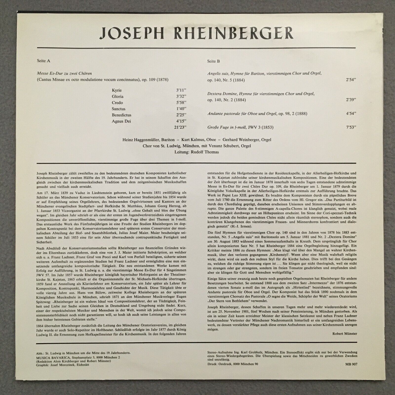R077 Rheinberger Mass Haggenmüller Schubert Thomas Musica Bavarica MB 907 Stereo