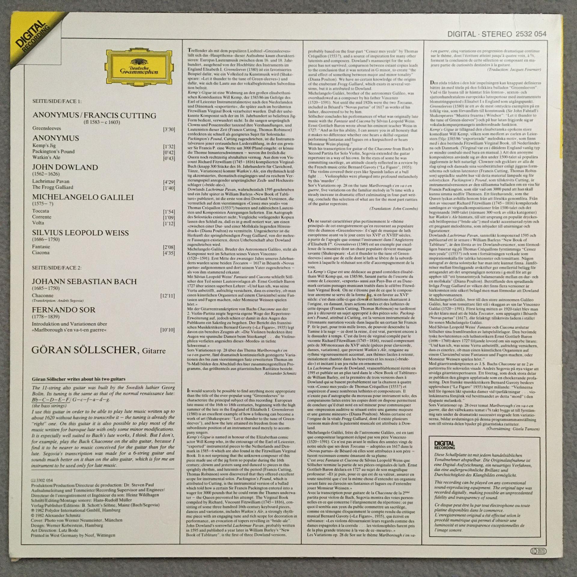 P767 Greensleeves Works by Bach Dowland Söllscher DGG 2532 054 Digital Stereo