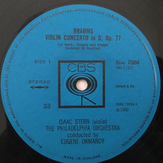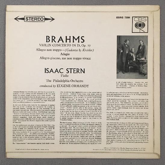 P775 Brahms Violin Concerto Stern Ormandy CBS SBRG 72094 Stereo