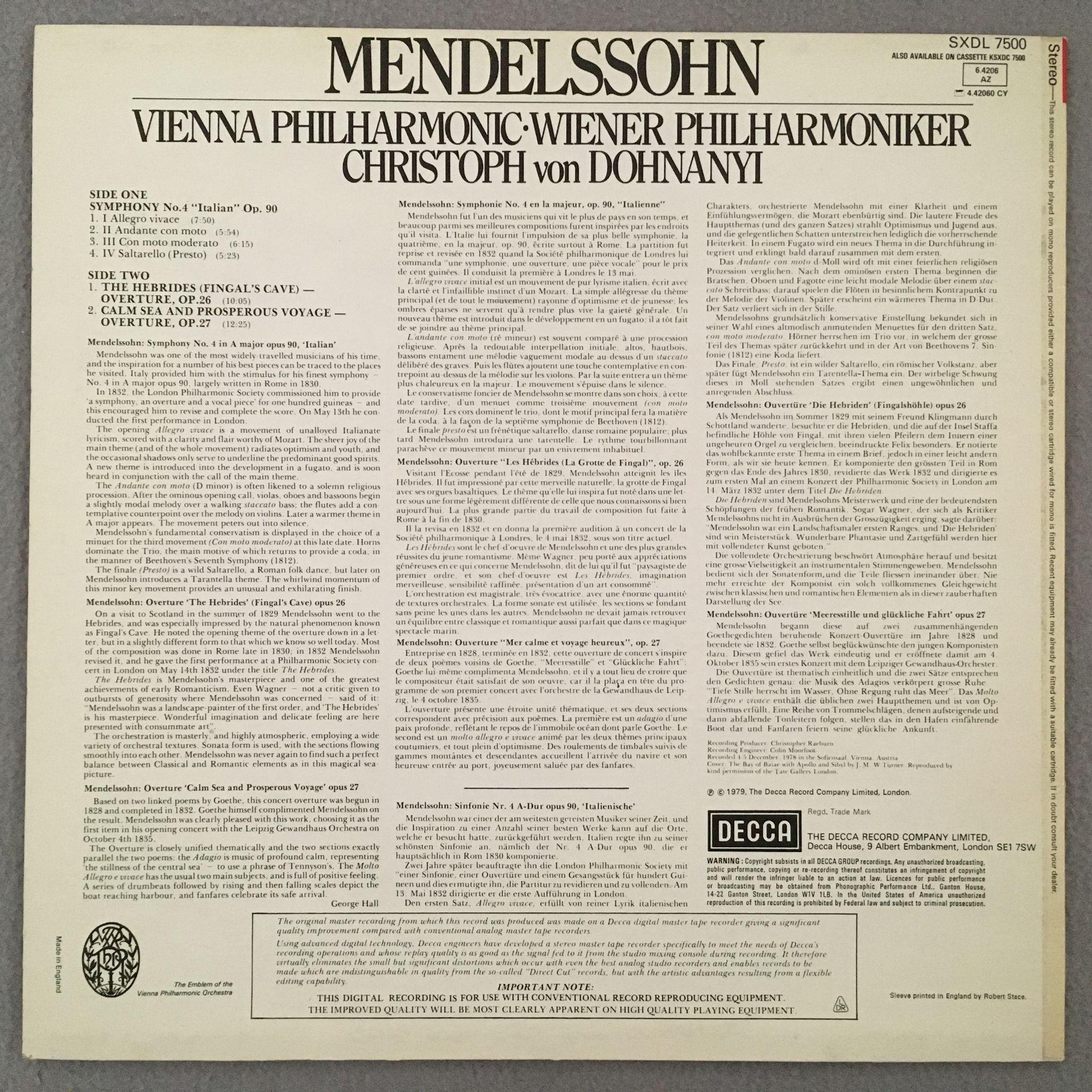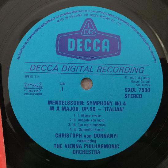 P779 Mendelssohn Symphony No.4 Dohnanyi VPO DECCA SXDL 7500 Digital Stereo