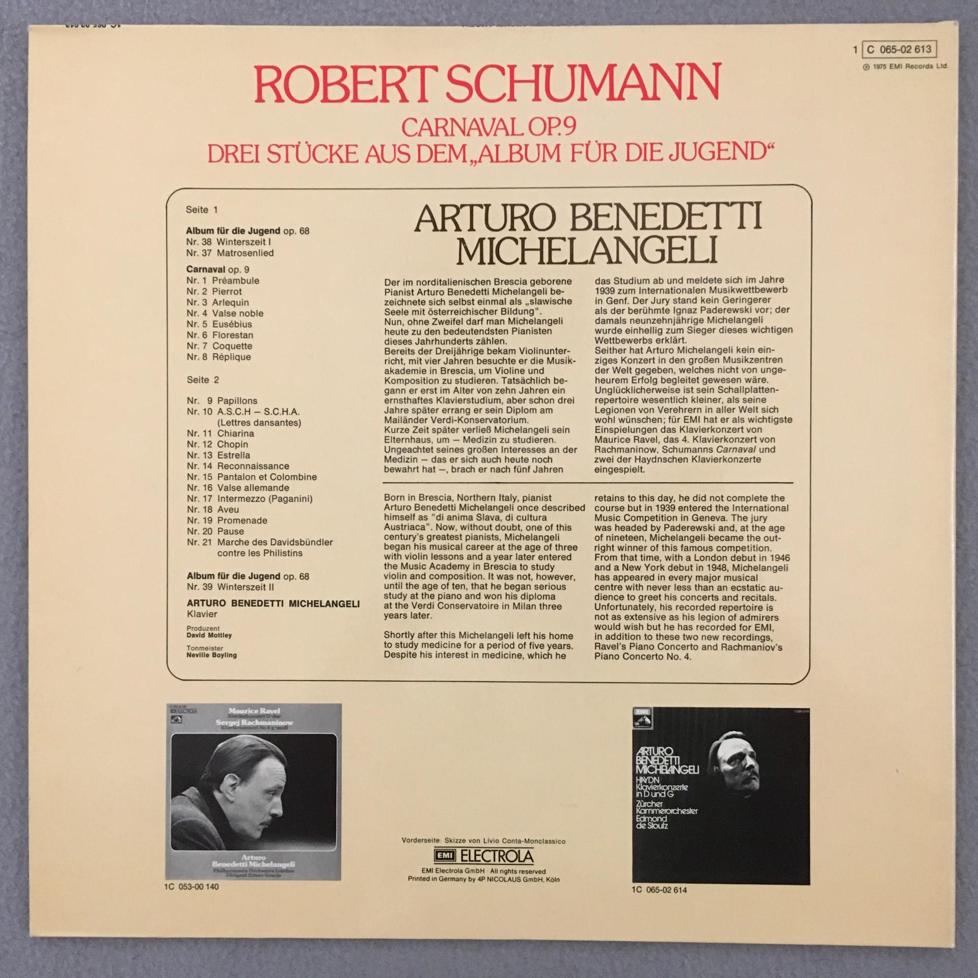 P780 Schumann Carnaval OP.9 Michelangeli Piano EMI 1 C 065-02 613 Stereo