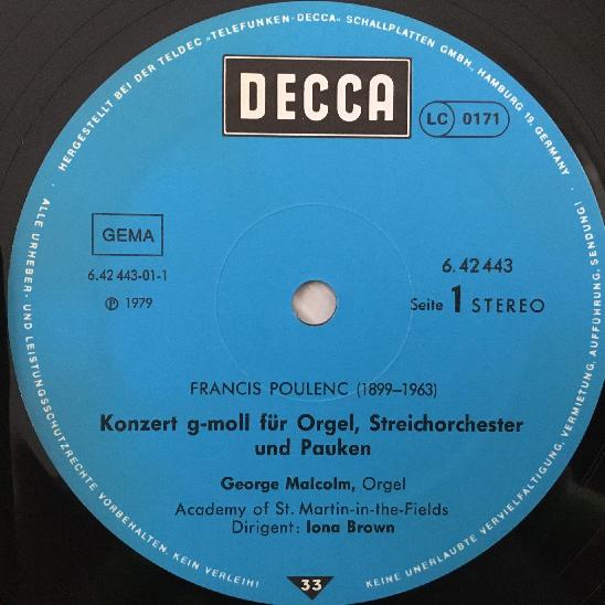 P782 Poulenc Organ Concerto Malcolm Brown DECCA 6.42443 AW Stereo