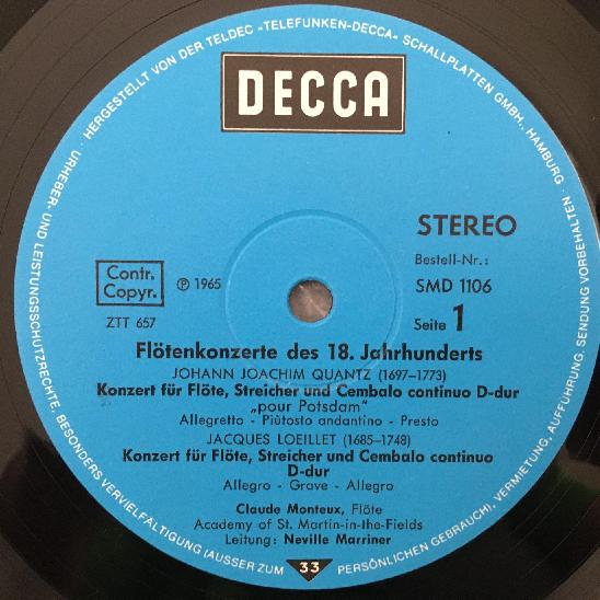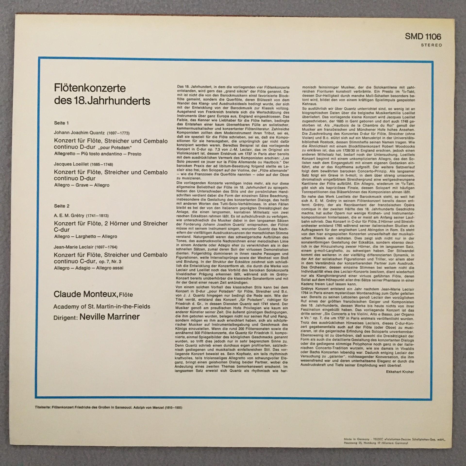 P786 Flute Concertos 18th Century Monteux Marriner DECCA SMD 1106 Stereo