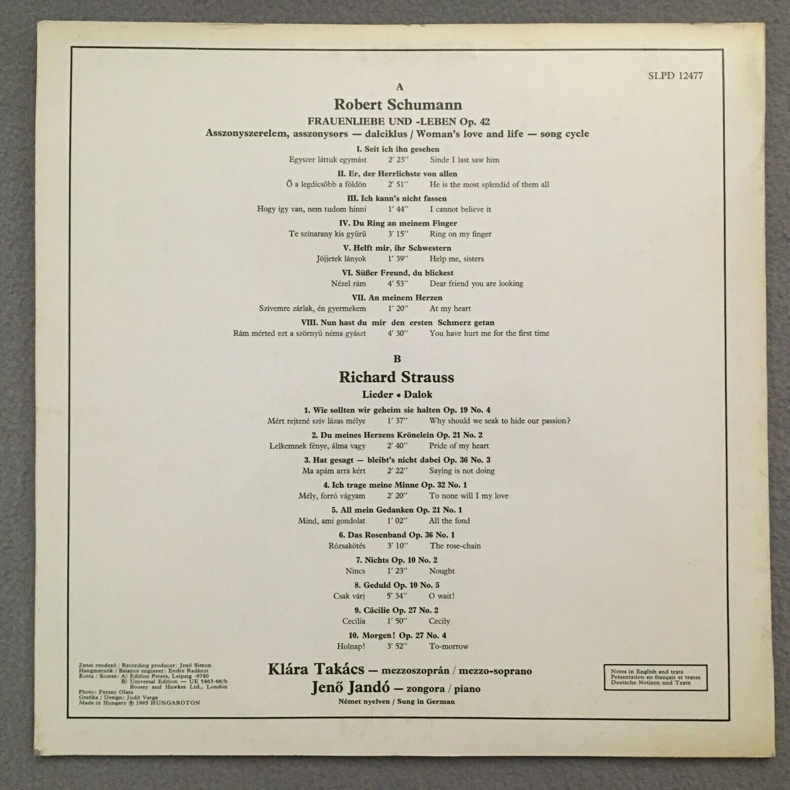 R068 Schumann R. Strauss Songs Takacs Jando Hungaroton SLPD 12477 Digital Stereo