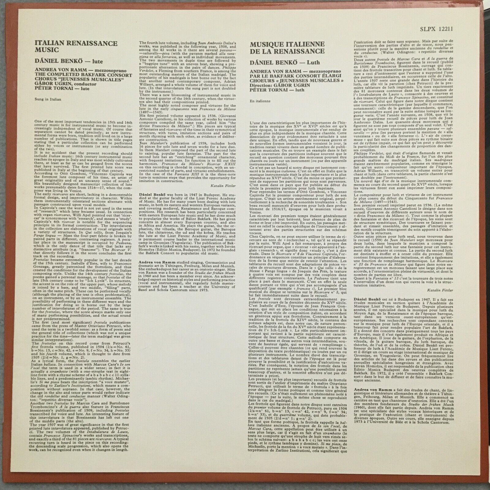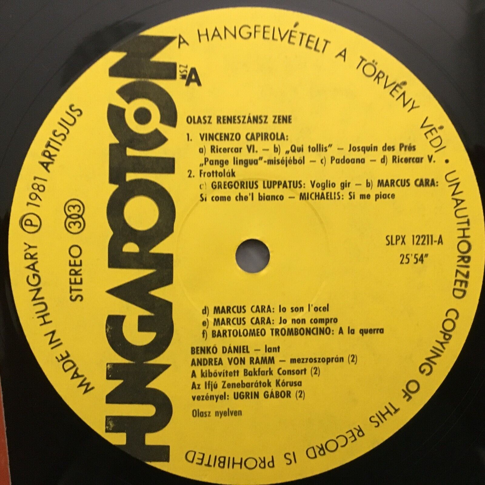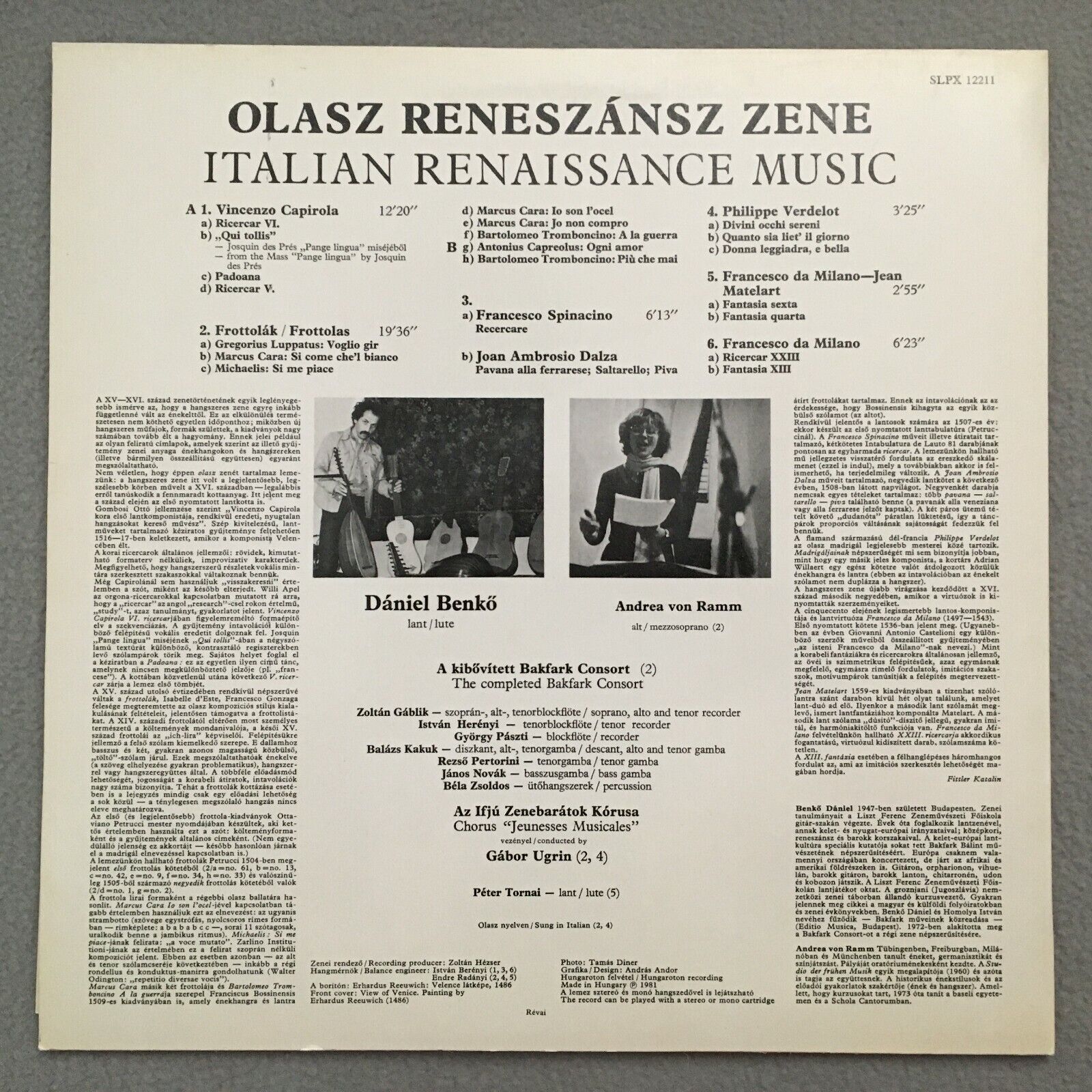 R067 Italian Renaissance Music Benkö Ramm Ugrin Hungaroton SLPX 12211 Stereo
