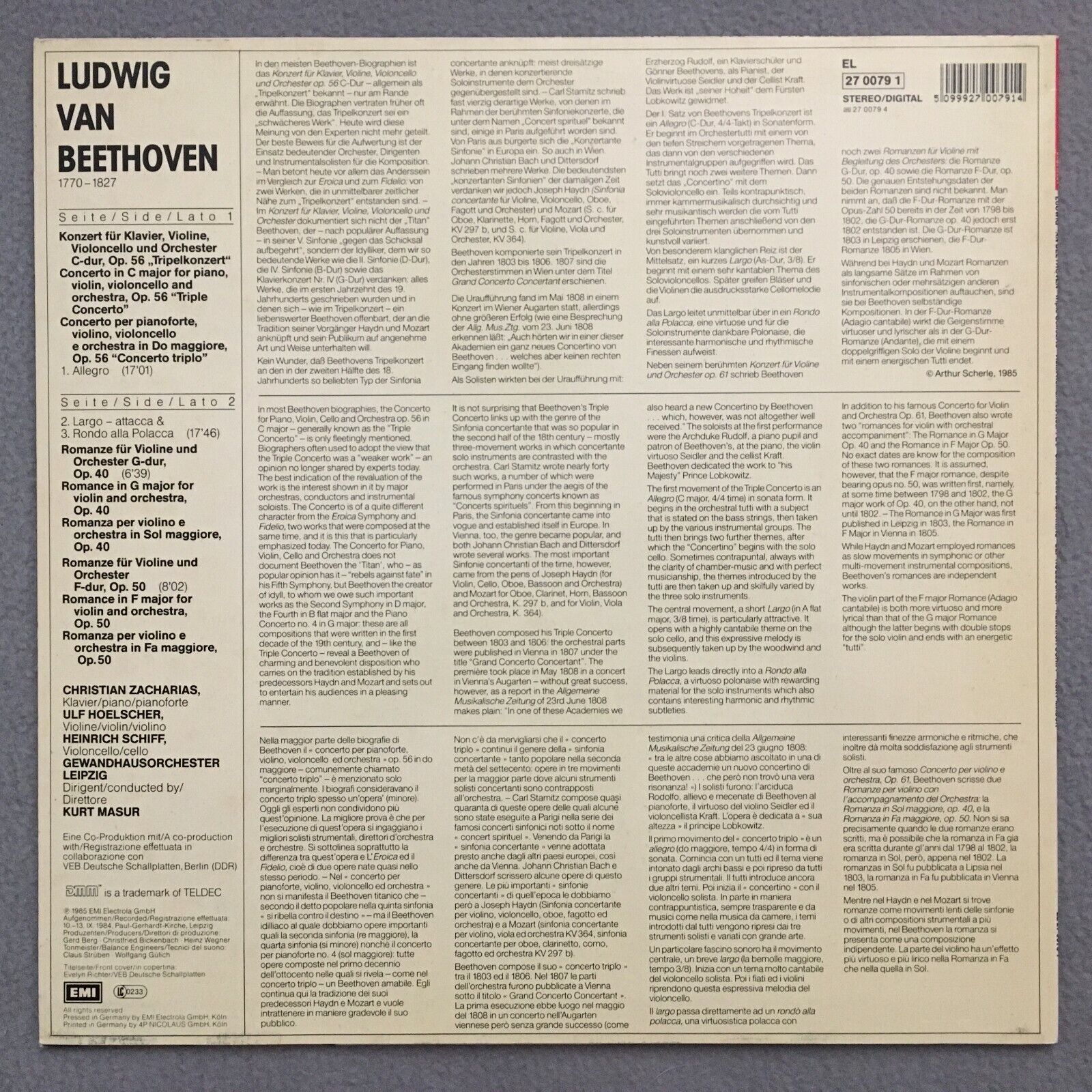 R065 Beethoven Triple Concerto Zacharias Hoelscher Masur EMI 27 0079 1 Digital S
