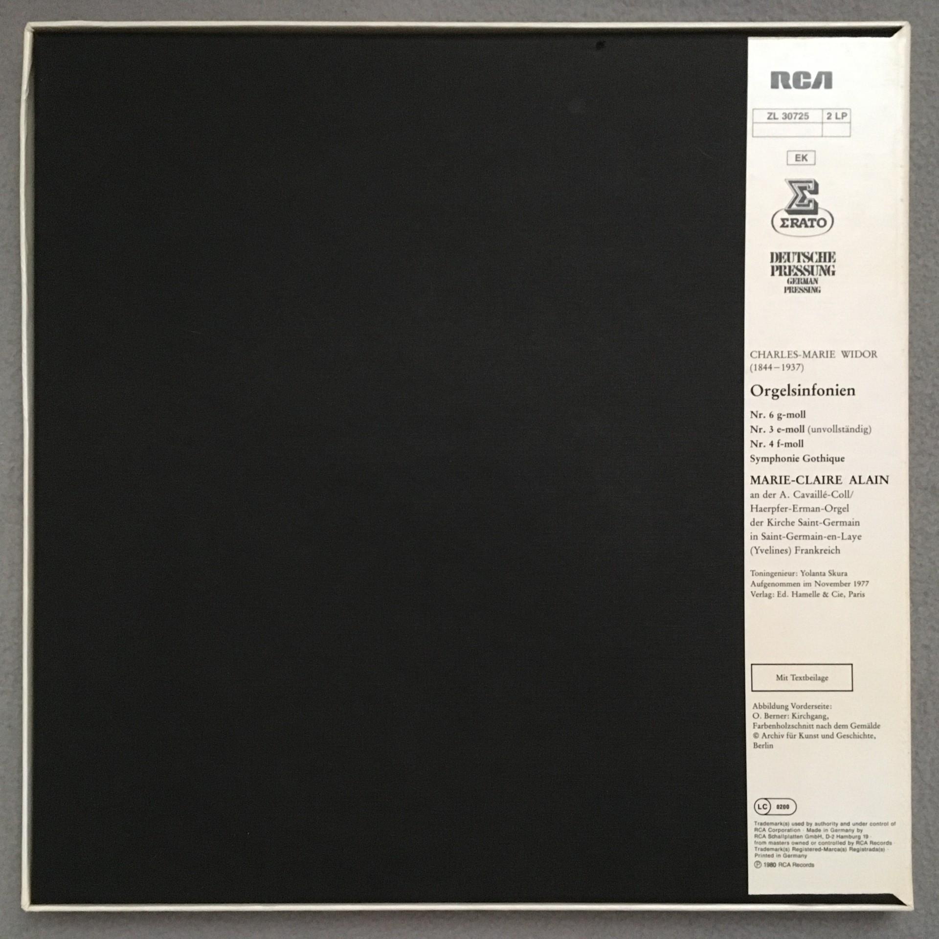D924 Widor Organ Symphonies Alain Organ 2LP Erato ZL 30725 Stereo